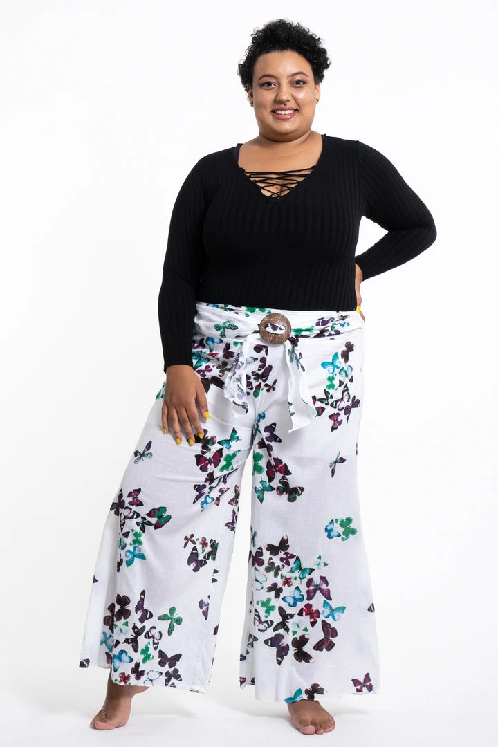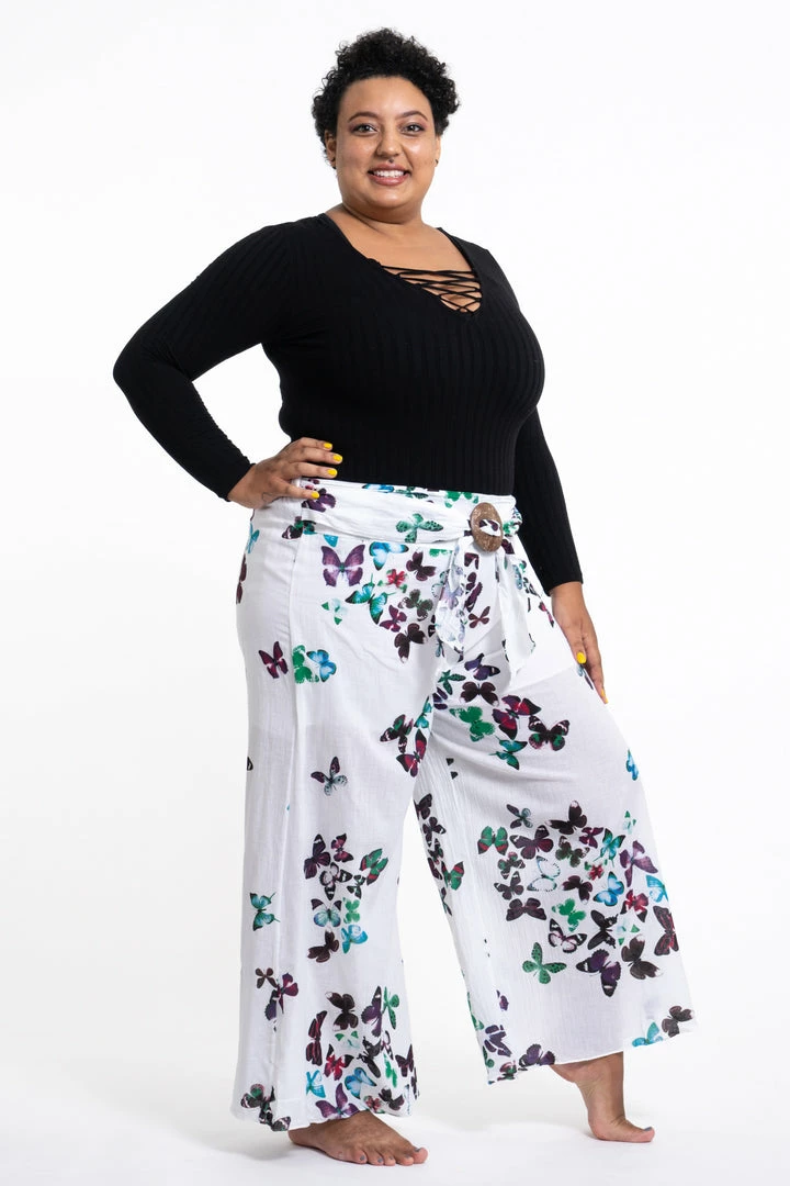 Super soft organic cotton wide-leg Thai style palazzo pants with elastic back waistband.