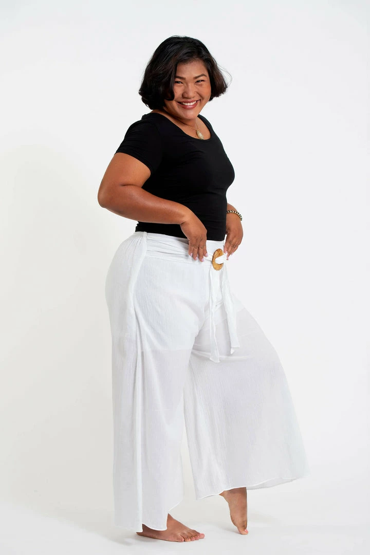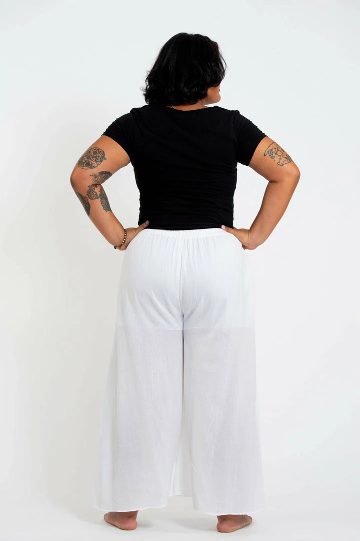 Super soft organic cotton wide-leg Thai style palazzo pants with elastic back waistband.