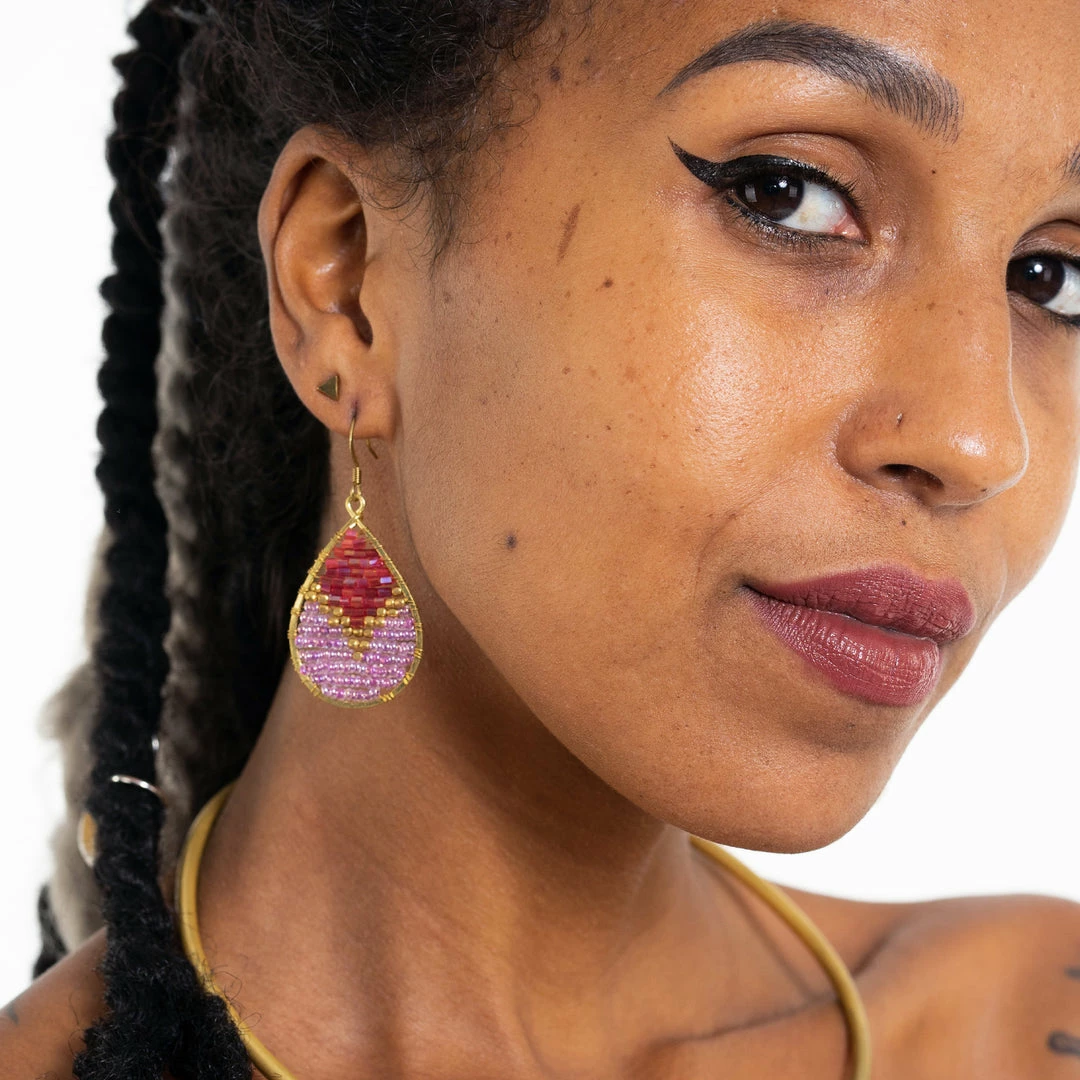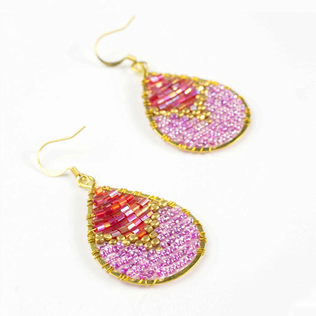 Gorgeous Thai artisan handcrafted wired brass teardrop dangle earrings with lovely beads.