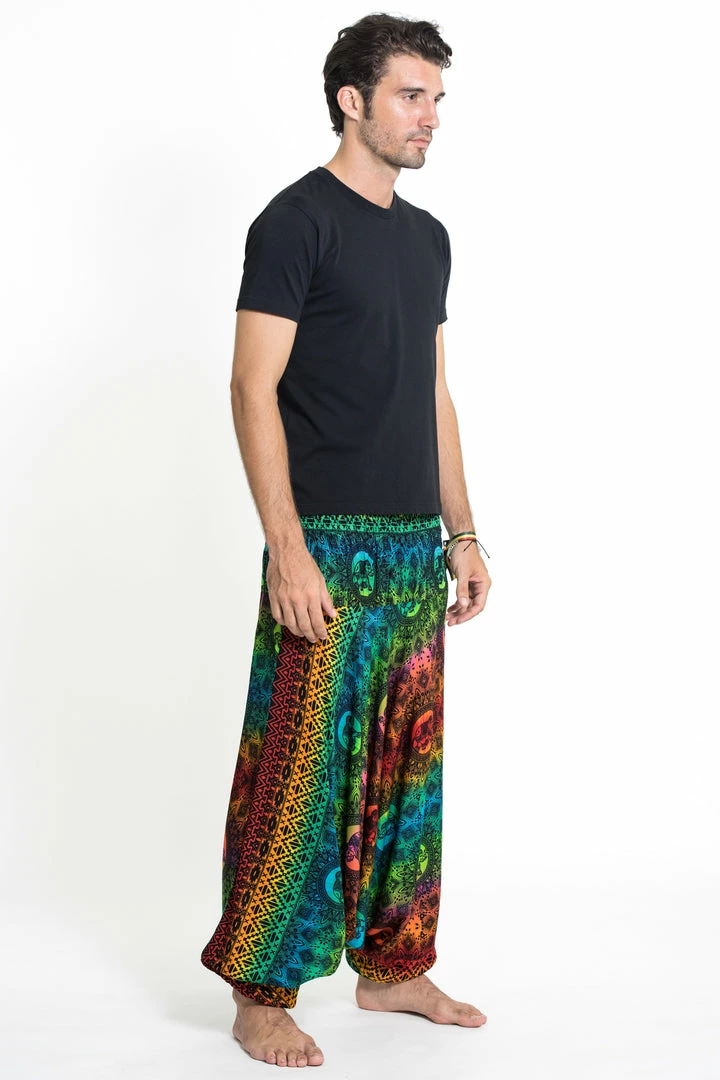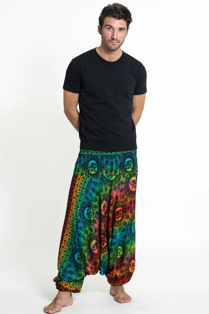 HaremPants.com Rainbow Elephant Drop Crotch Men’s Elephant Pants In Orange
