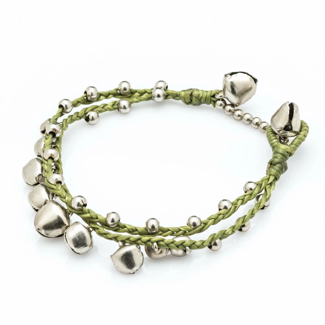 HaremPants.com Silver Color Bell Waxed Cotton Bracelets In Lime