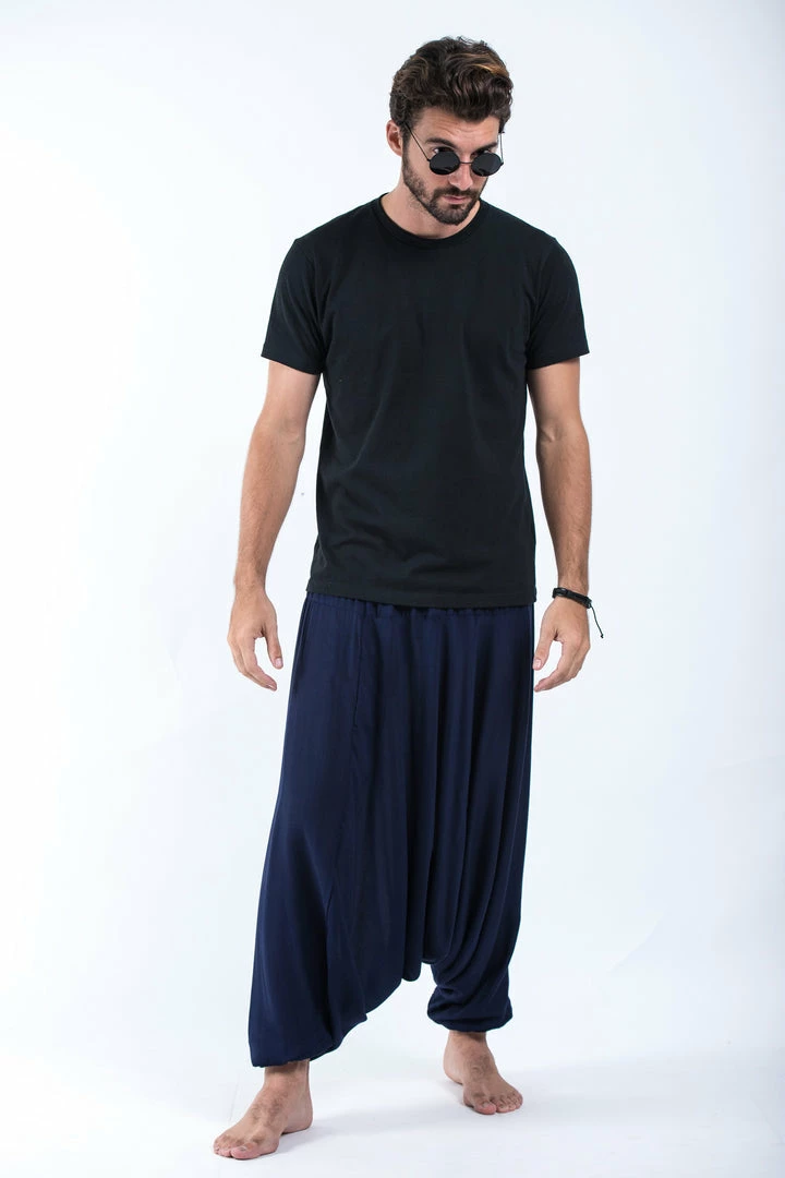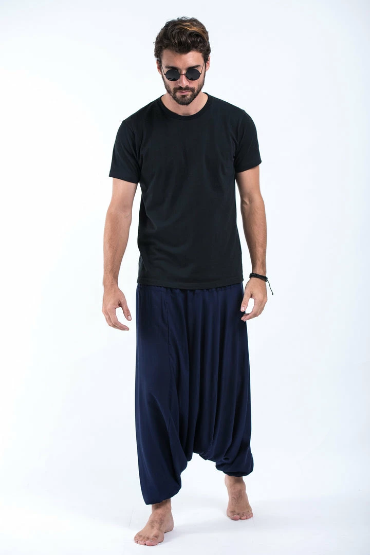 HaremPants.com Solid Color Drop Crotch Men’s Harem Pants In Blue