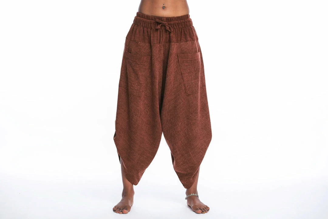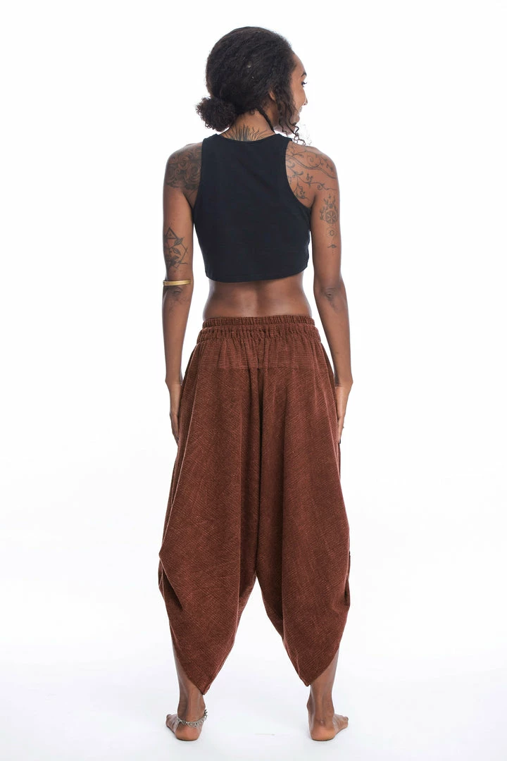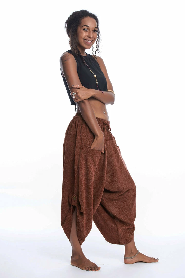 Stone Washed Large Pockets Harem Pants are super comfy and fun. Crafted with Thai Cotton . 2 big convenient pockets. Adjustable waist with elastic and drawstring.
