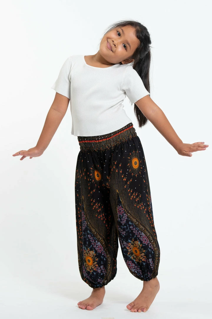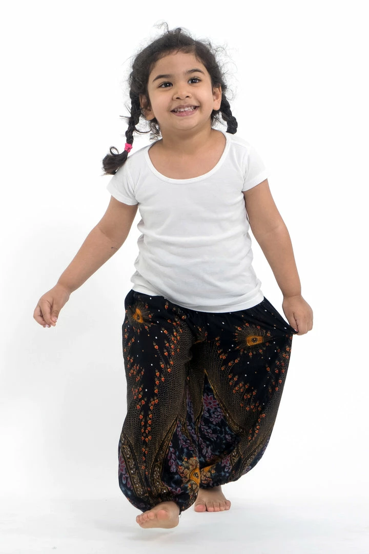 HaremPants.com Summer Super Sale 2022 Peacock Eye Kids Harem Pants In Black
