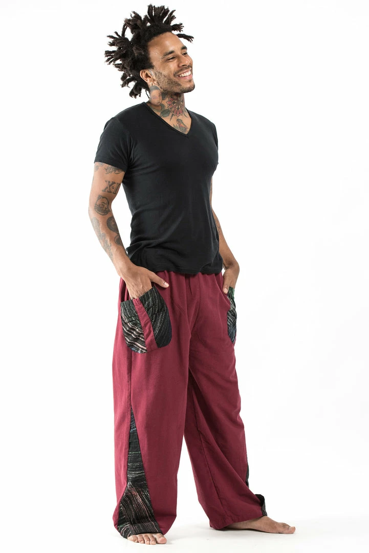 Thai Cotton Pants With Hill Tribe Trim Legs and Pockets.