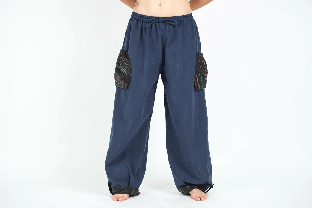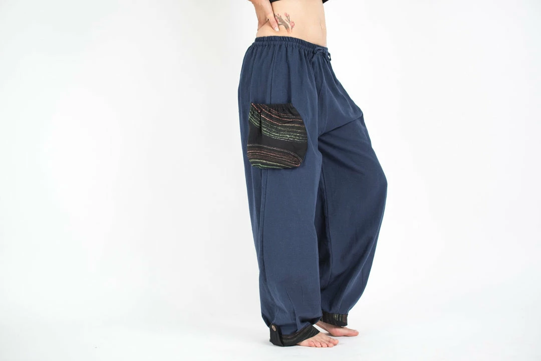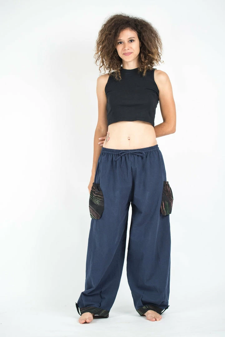 Thai Cotton Drawstring Pants With Hill Tribe Trim Ankles and Pockets.