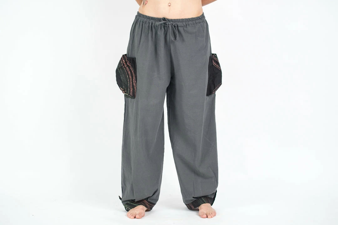 Thai Cotton Drawstring Pants With Hill Tribe Trim Ankles and Pockets.
