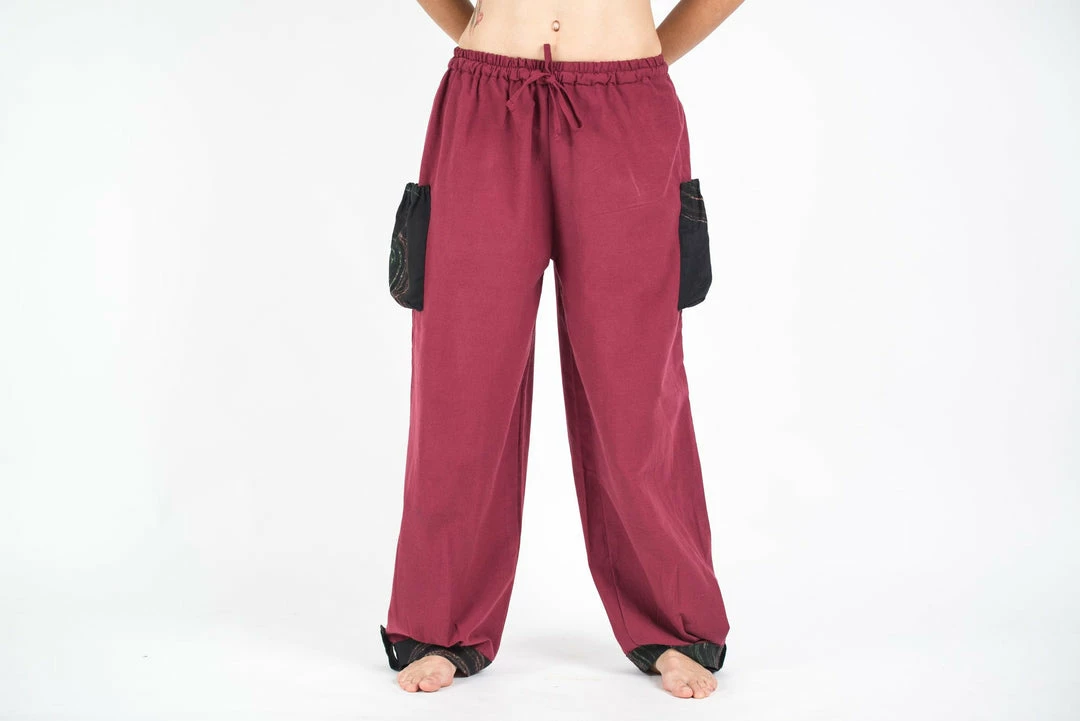 Thai Cotton Drawstring Pants With Hill Tribe Trim Ankles and Pockets.