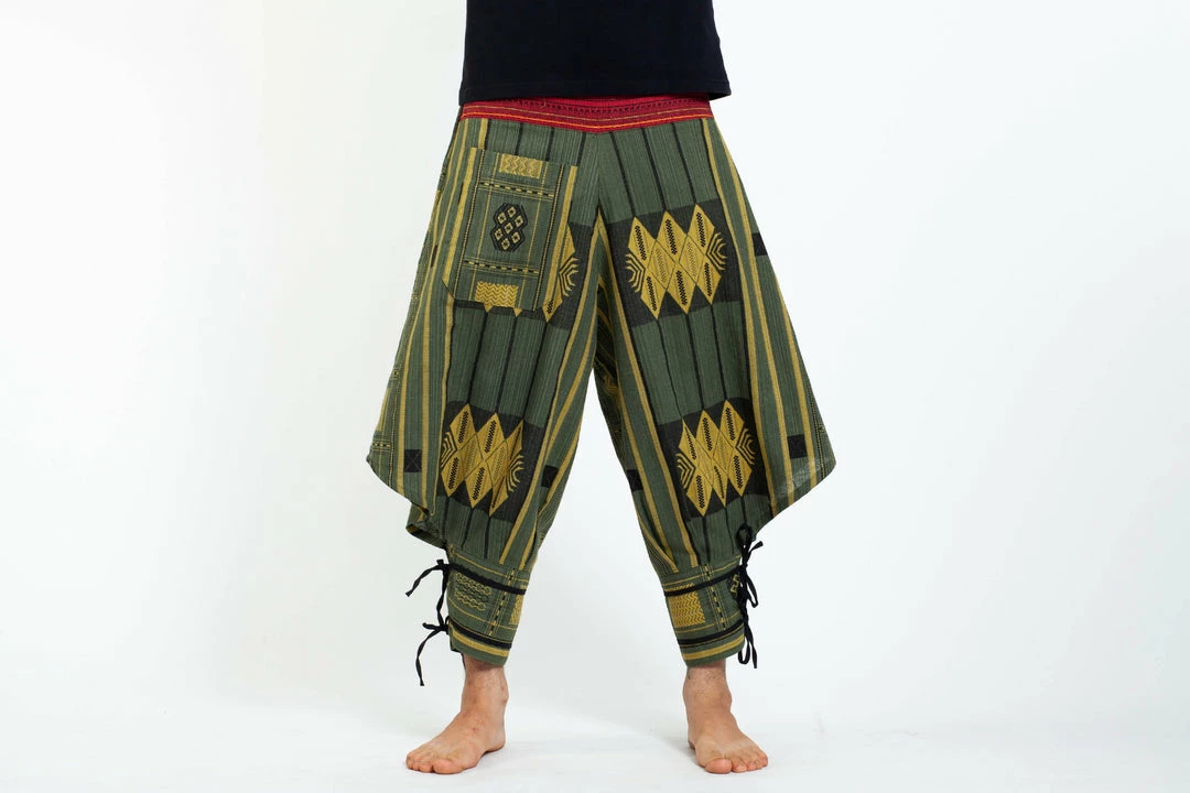 Amazing Unique High Cut Harem Pants made from fairtrade beautiful traditional hill tribe fabric from the North of Thailand.