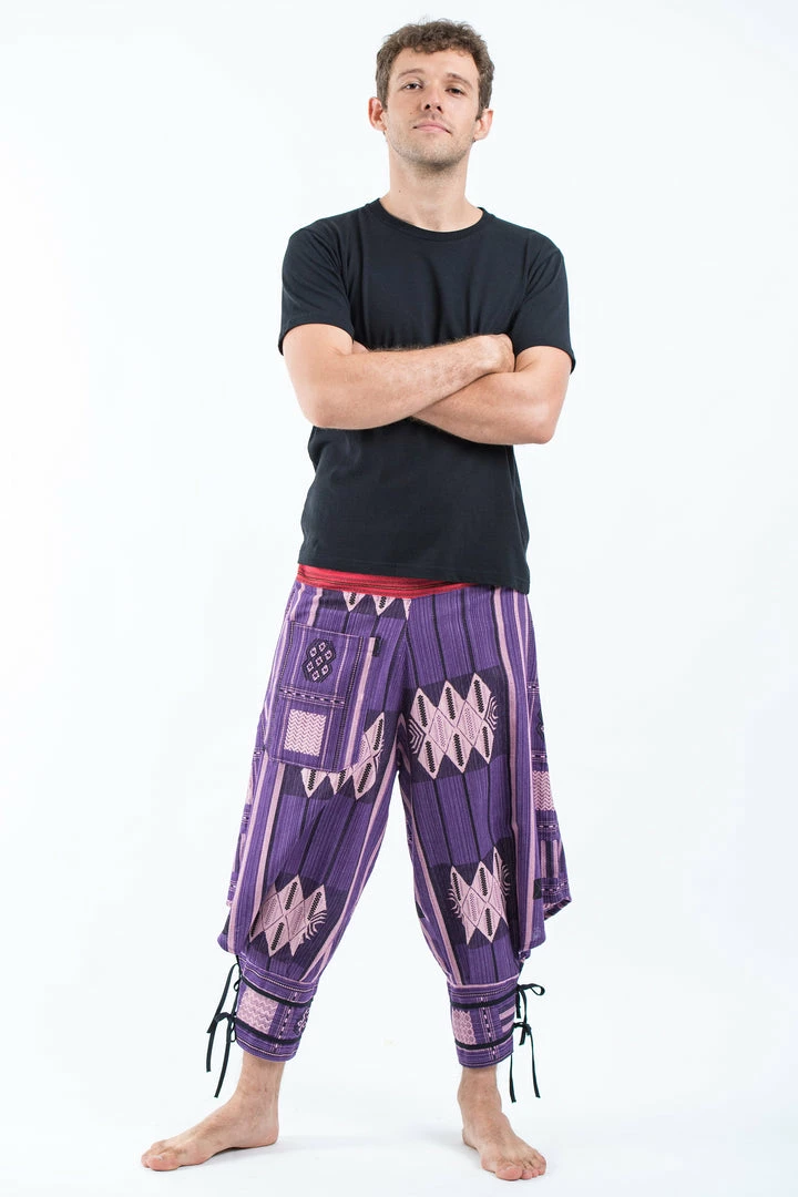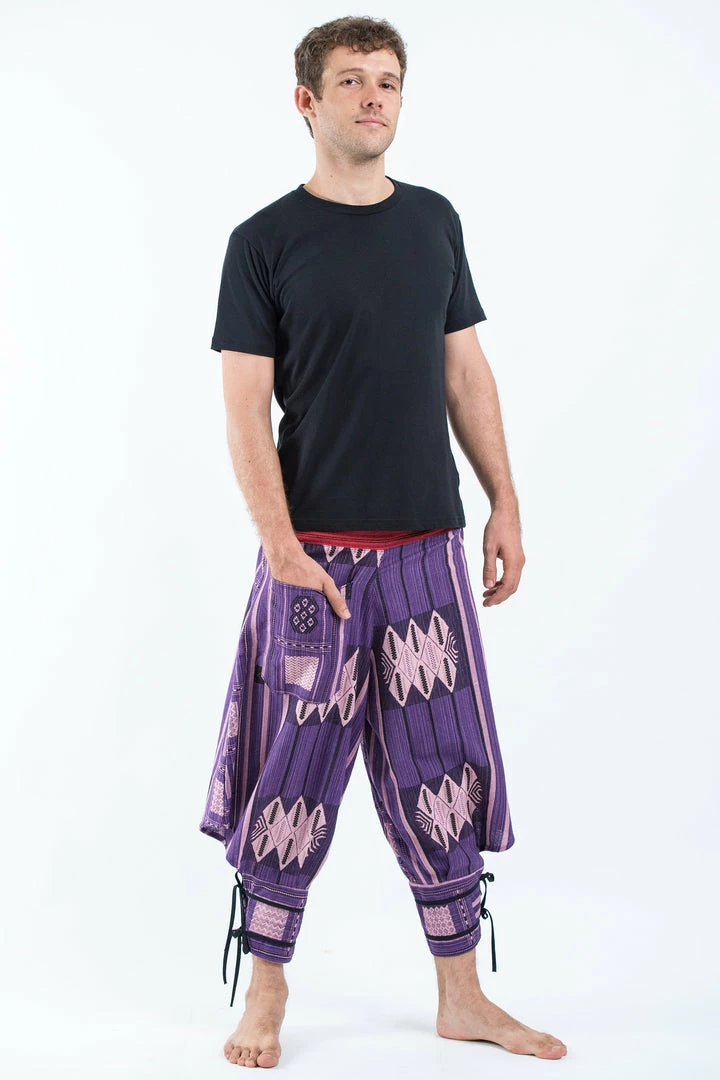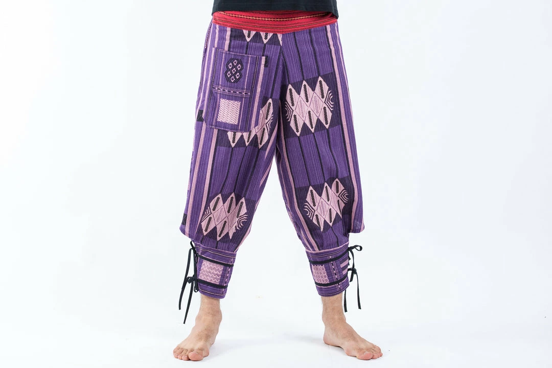 HaremPants.com Thai Hill Tribe Fabric Men’s Harem Pants With Ankle Straps In Purple