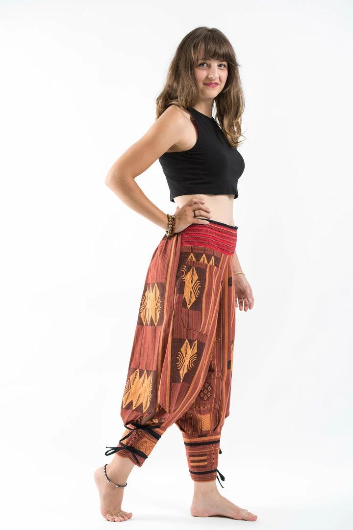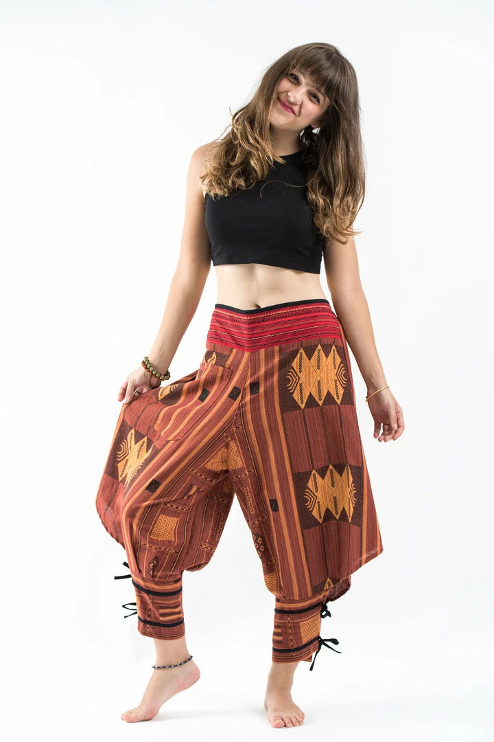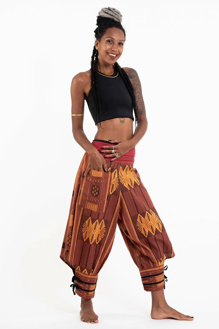 HaremPants.com Thai Hill Tribe Fabric Women Harem Pants With Ankle Straps In Brick Orange Women’s