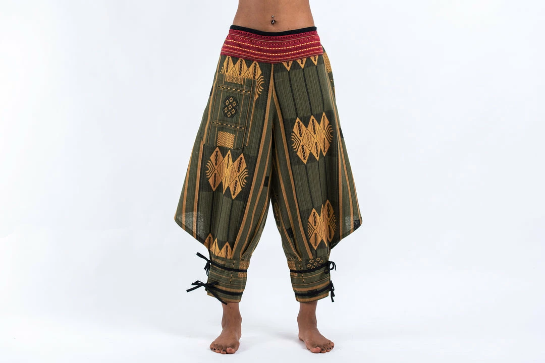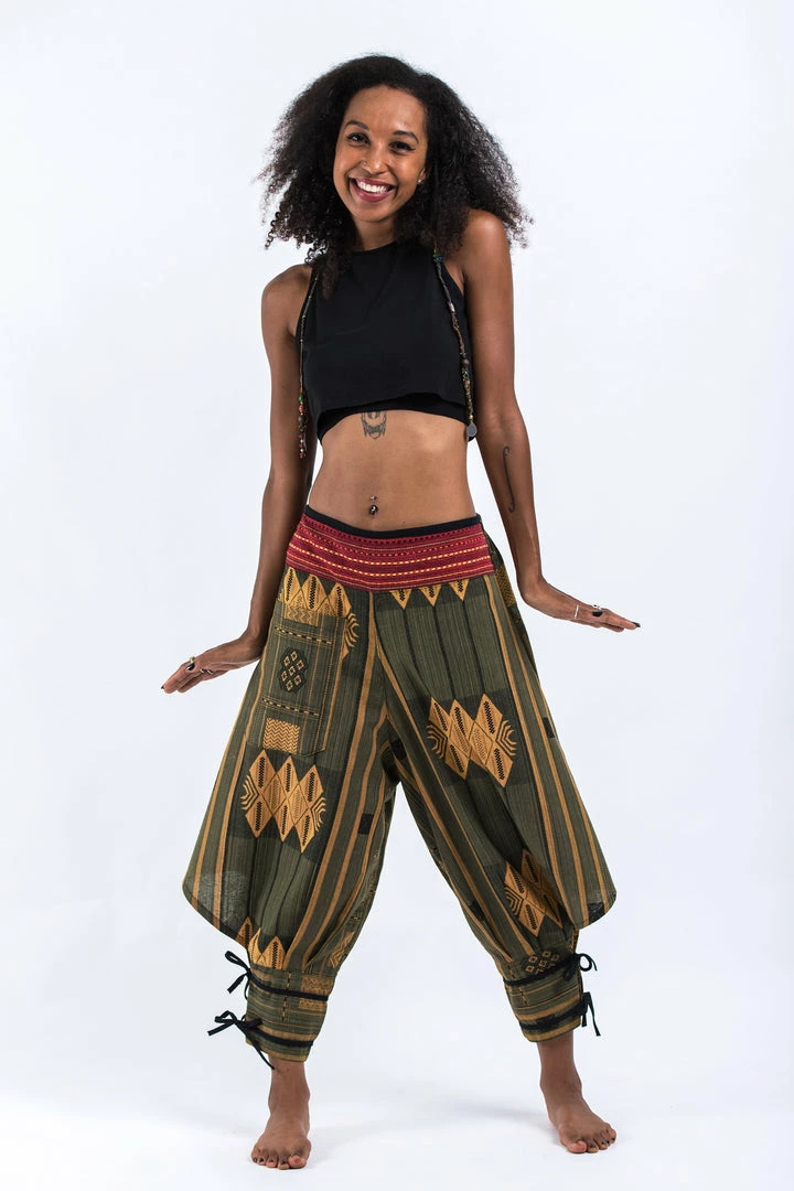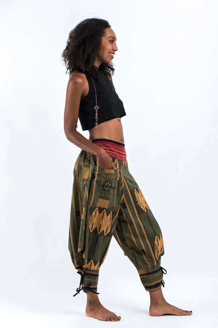 HaremPants.com Thai Hill Tribe Fabric Women’s Harem Pants With Ankle Straps In Olive