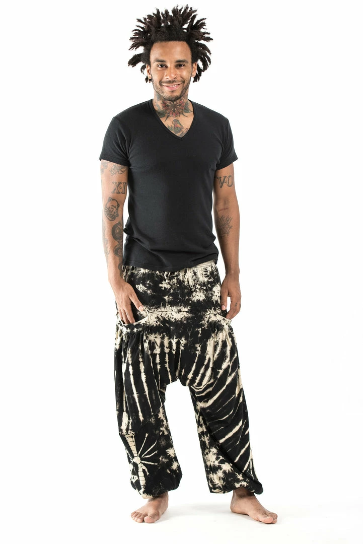 HaremPants.com Tie Dye Cotton Men Harem Pants In Black White Men’s