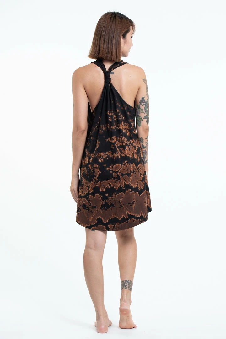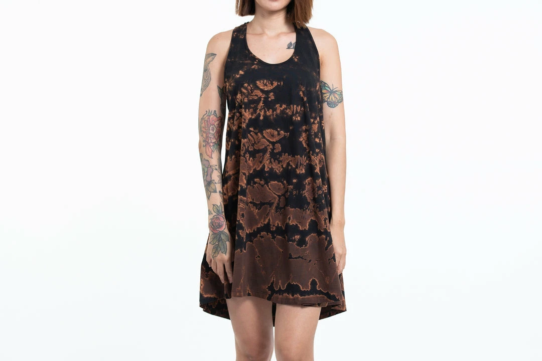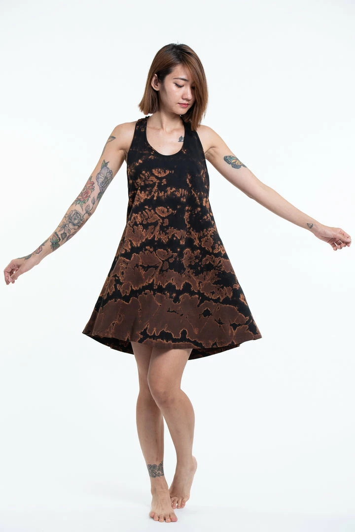 Comfy Tie Dye Cotton Tank Dress in Black with stylish bleached tie-dye patterns.