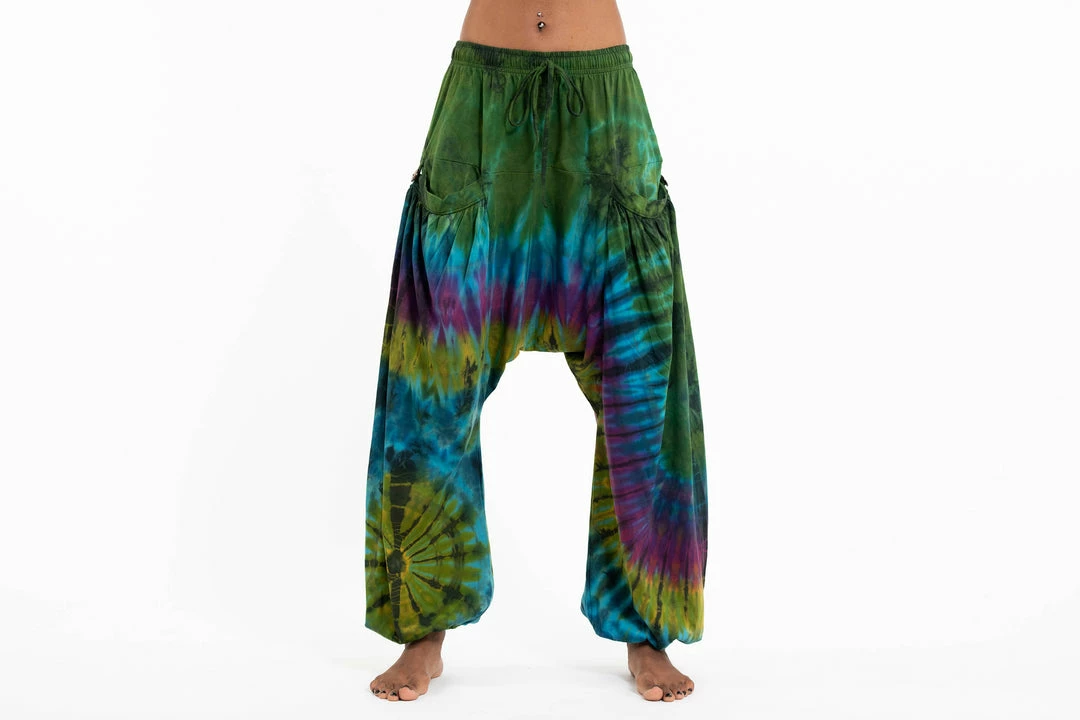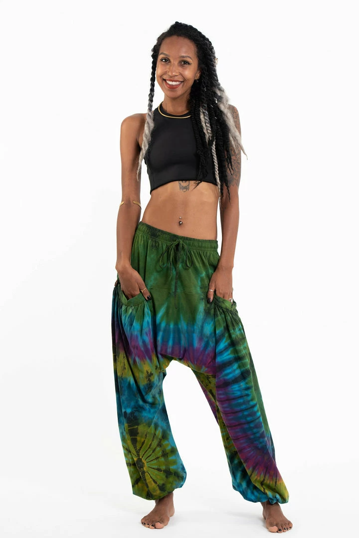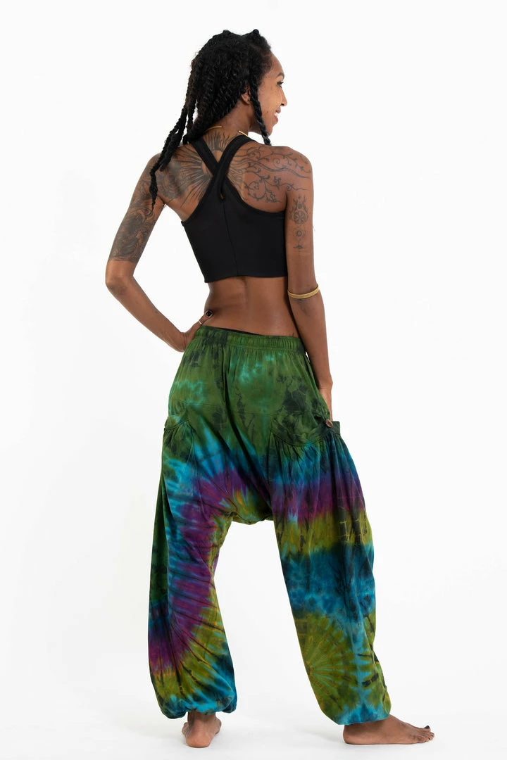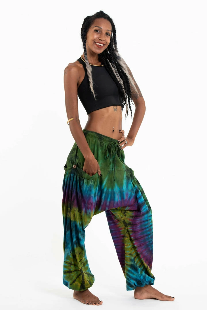 HaremPants.com Tie Dye Cotton Women Harem Pants In Green Blue