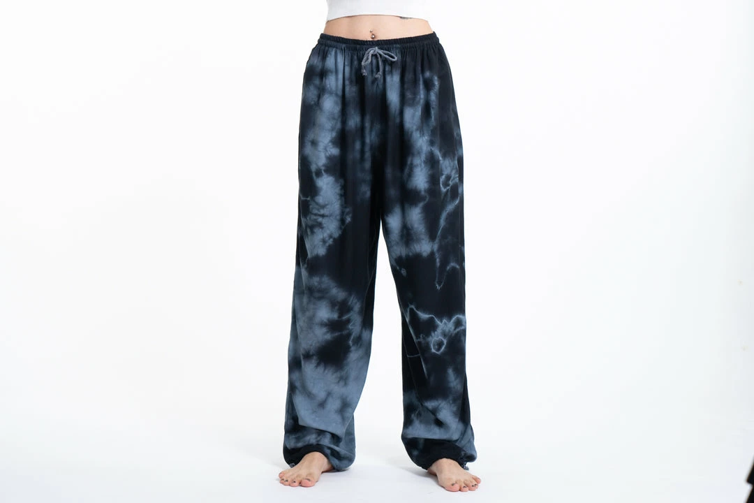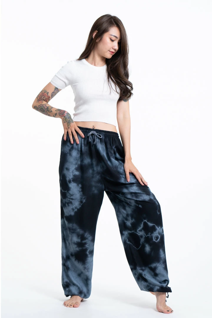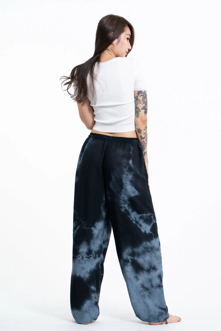 HaremPants.com Tie Dye Drawstring Women’s Yoga Massage Pants In Black