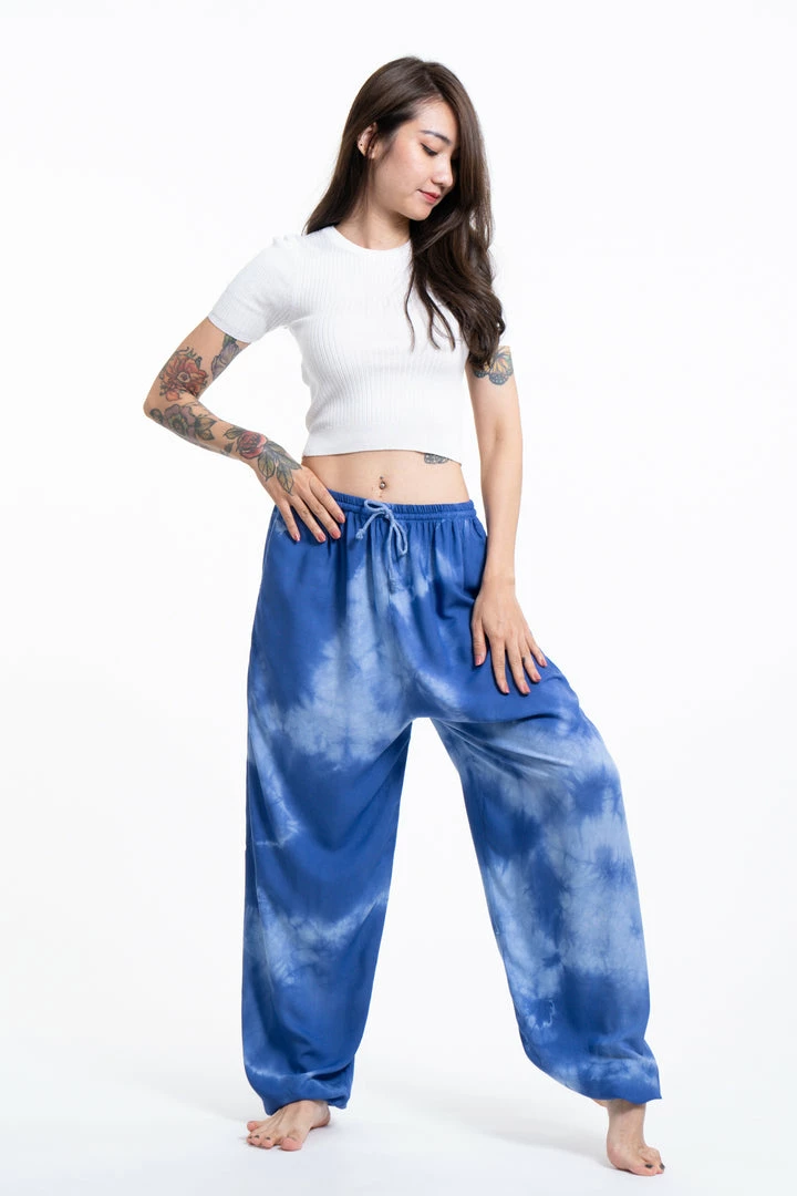 HaremPants.com Tie Dye Drawstring Women’s Yoga Massage Pants In Blue