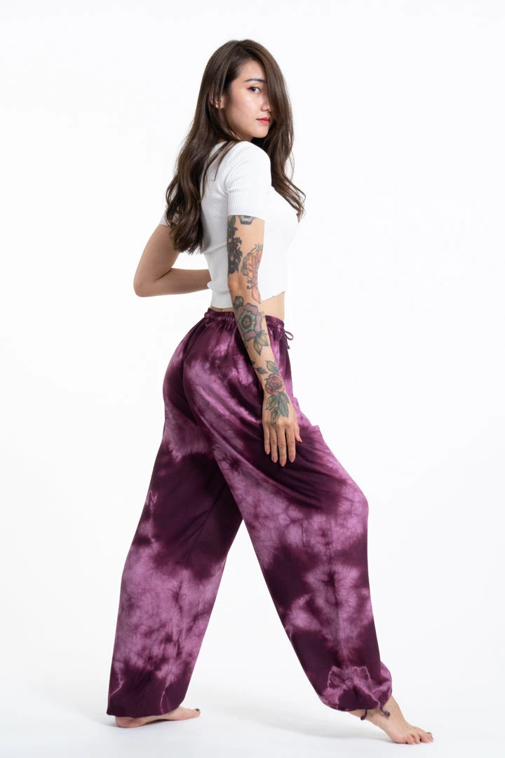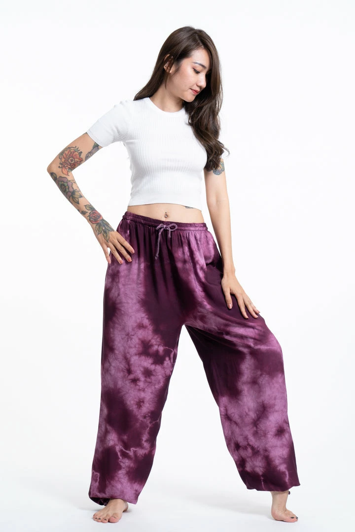 HaremPants.com Tie Dye Drawstring Women’s Yoga Massage Pants In Dark Purple