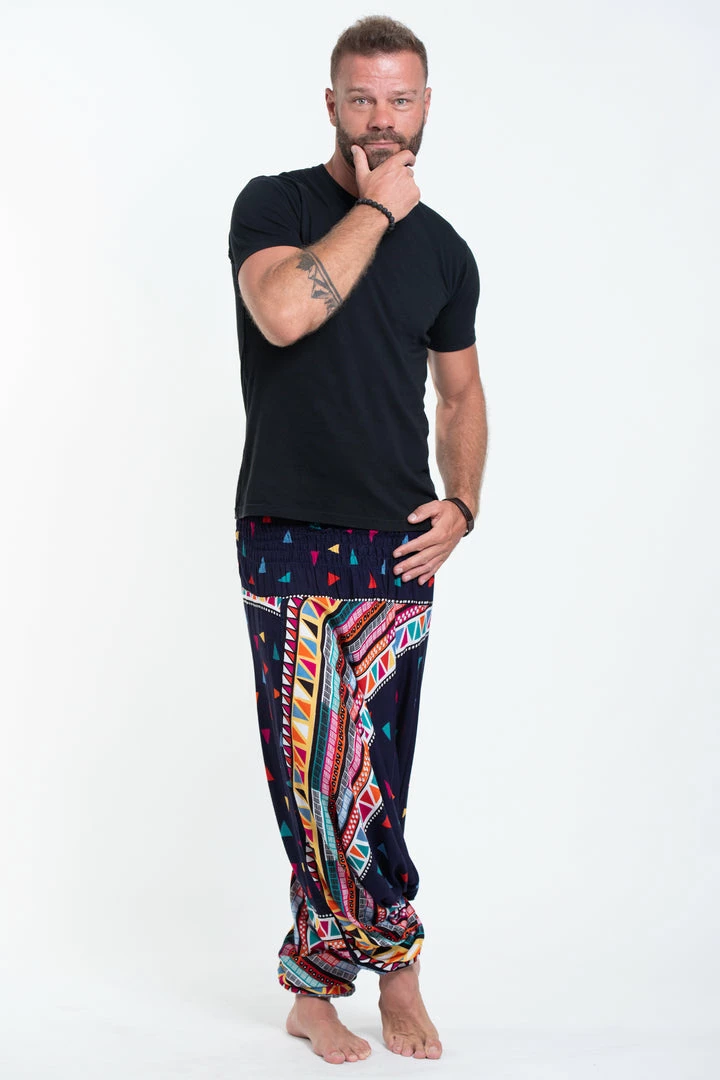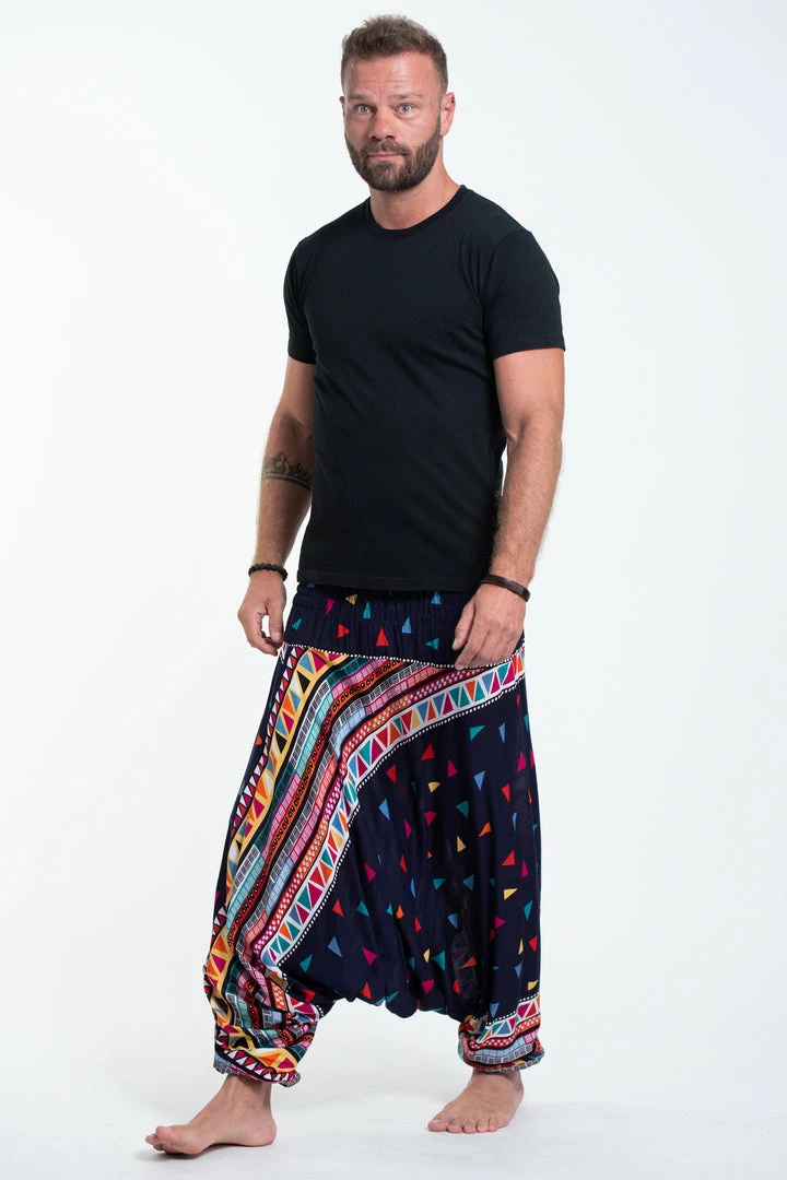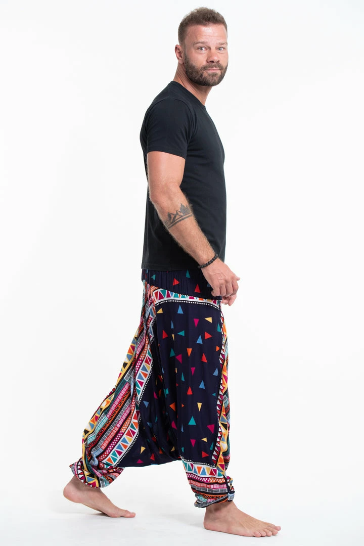 HaremPants.com Triangles Drop Crotch Men’s Harem Pants In Navy