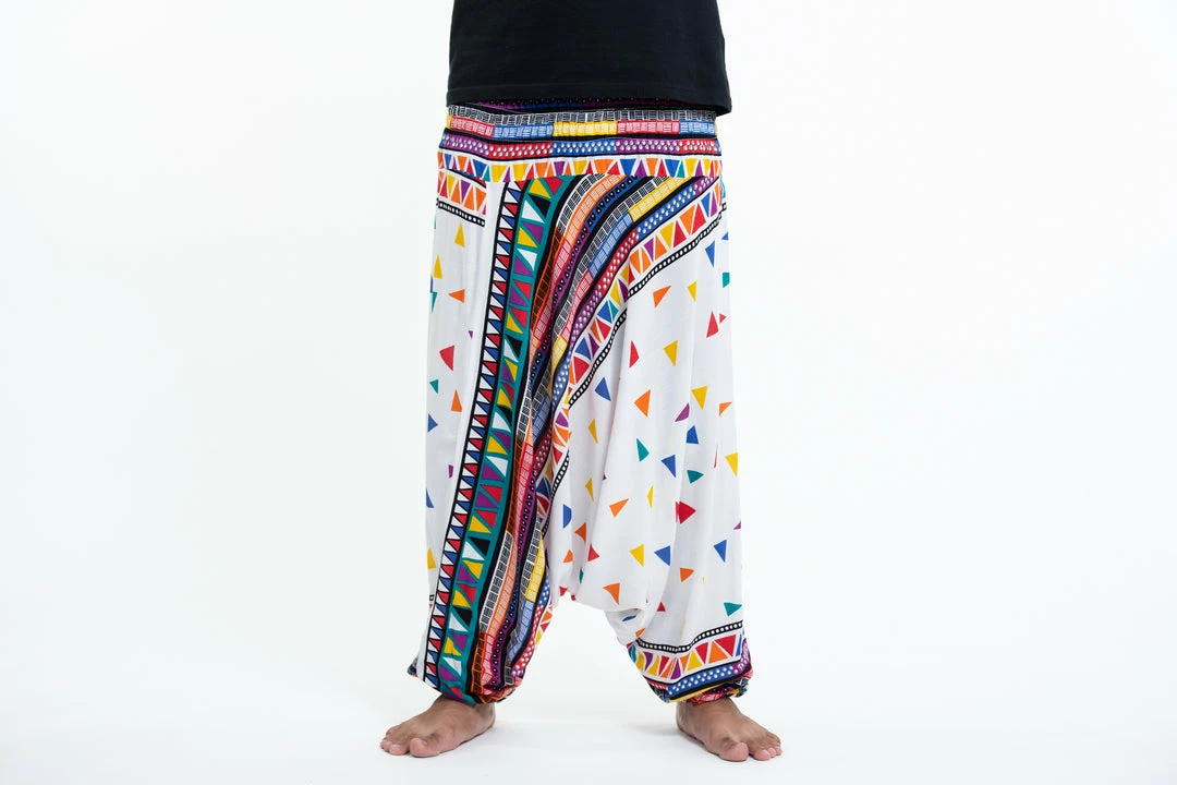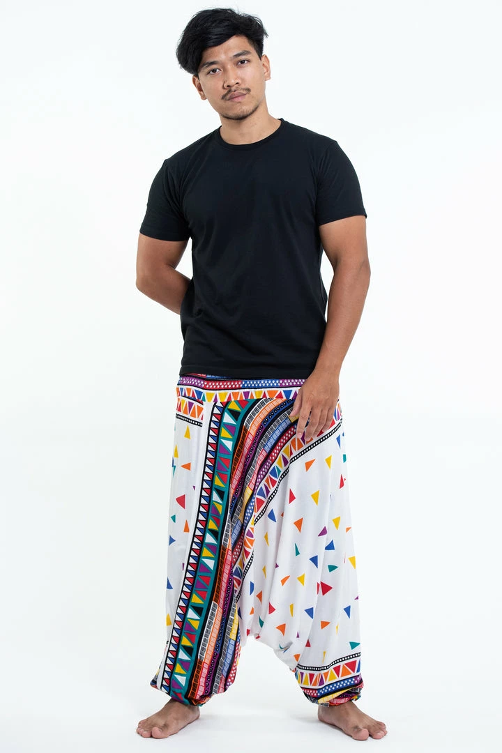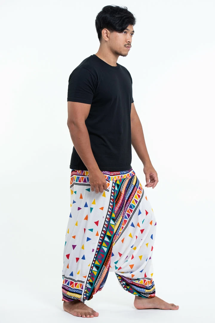 HaremPants.com Triangles Drop Crotch Men’s Harem Pants In White