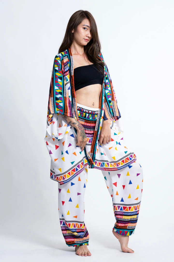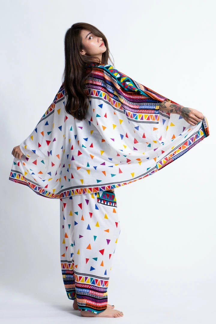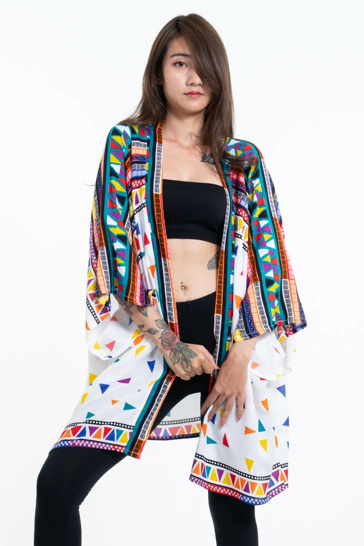 Soft flowy all-around marvelous Kimono Cardigan featuring beautiful electric funky pattern made with Thai rayon fabric.
