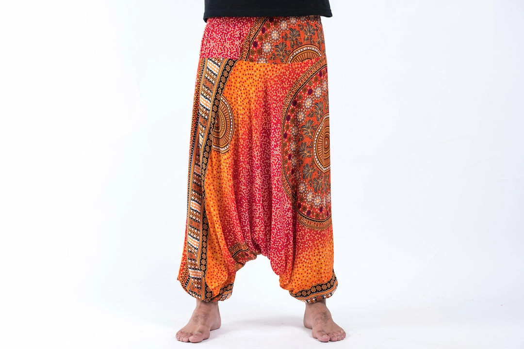 HaremPants.com Tribal Chakras Drop Crotch Men’s Harem Pants In Orange