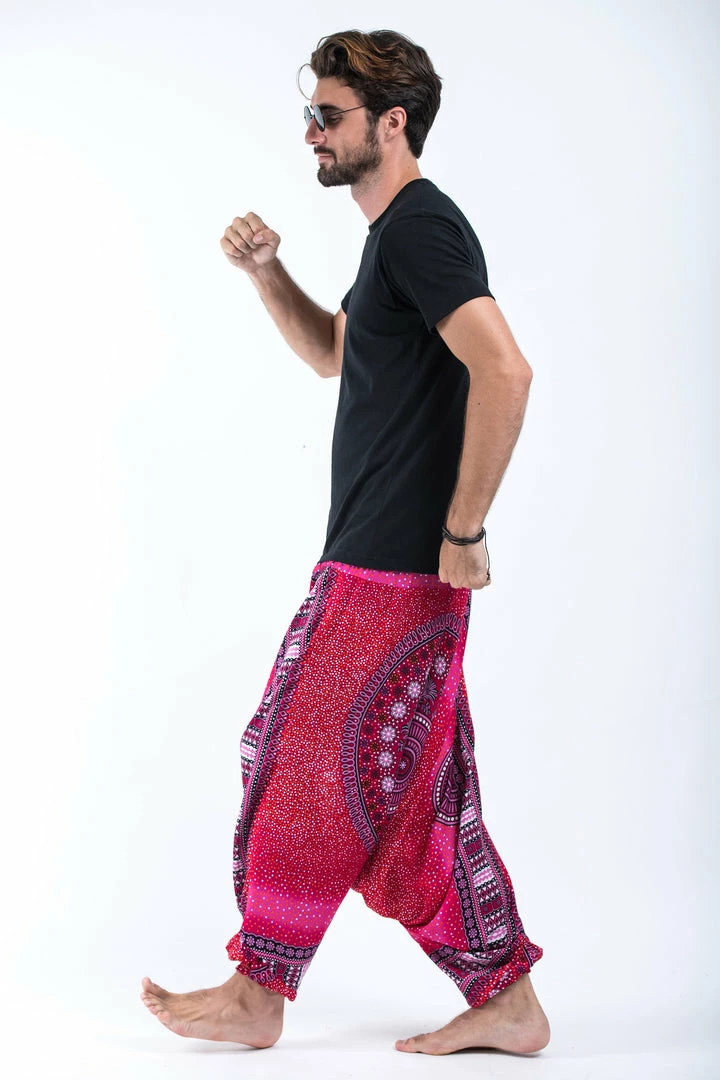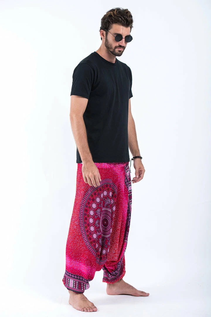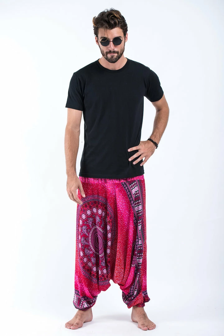 HaremPants.com Tribal Chakras Drop Crotch Men’s Harem Pants In Pink