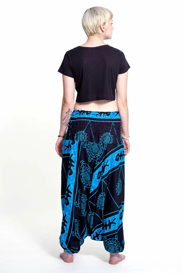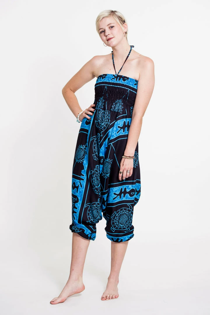 HaremPants.com Turtle Print Jumpsuit Harem Pants In Blue