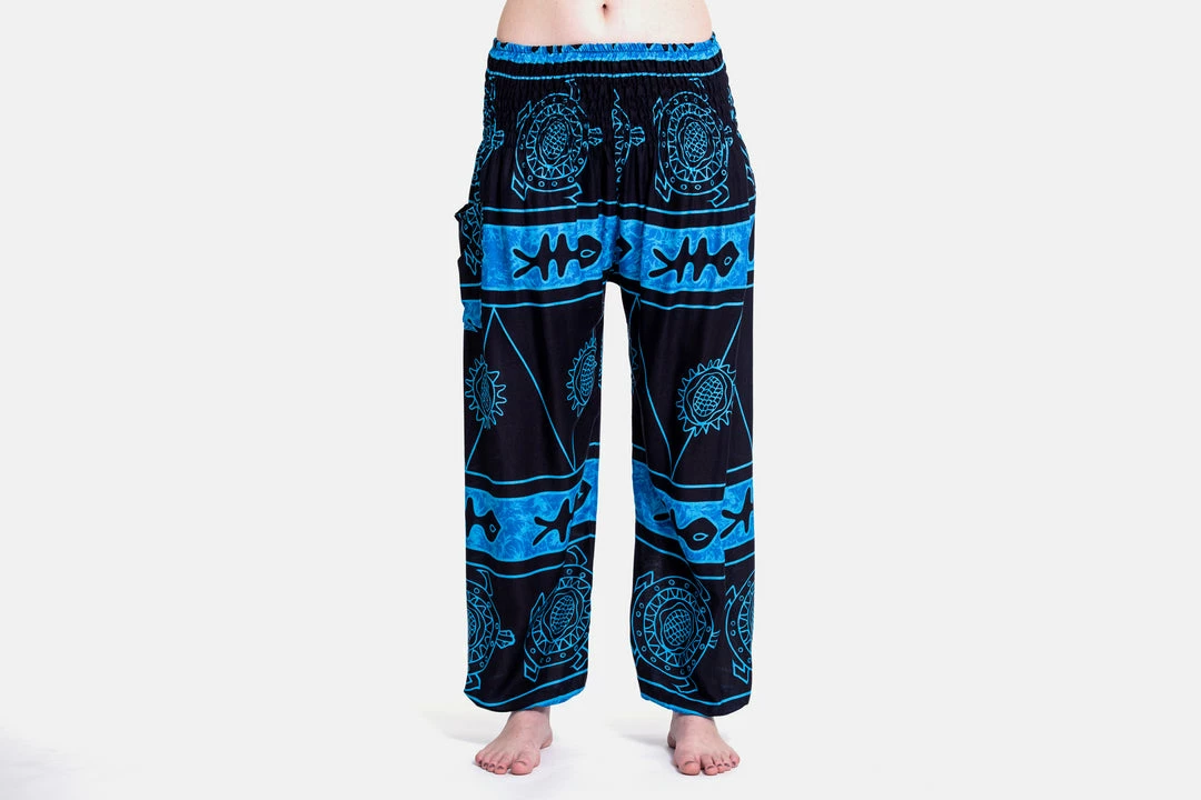 Super soft and lightweight Turtle Print Harem Pants made with Thai rayon fabric.