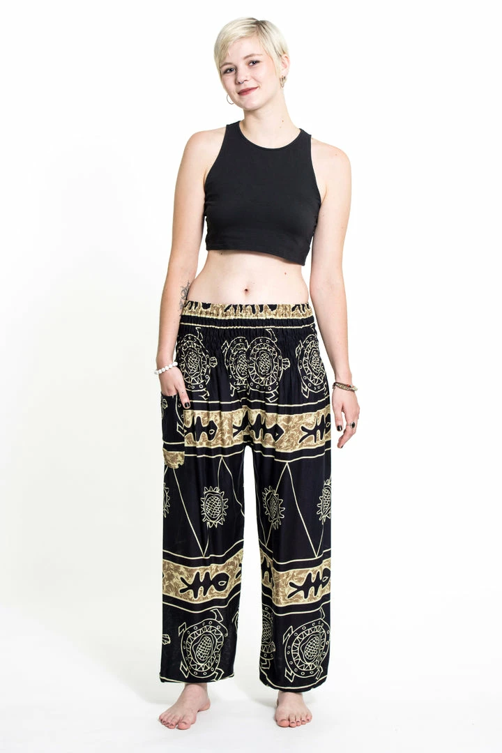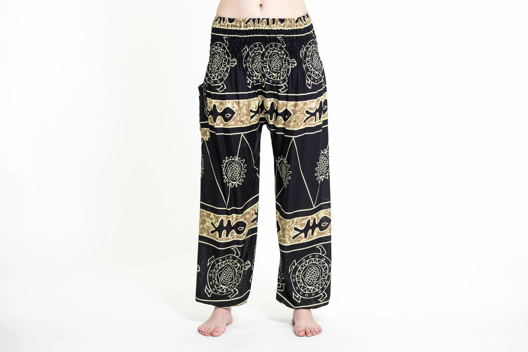 Super soft and lightweight Turtle Print Harem Pants made with Thai rayon fabric.