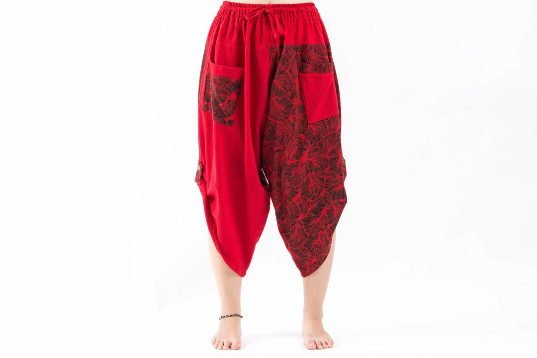 Two Tone Leaves Prints Three Quarter Pants