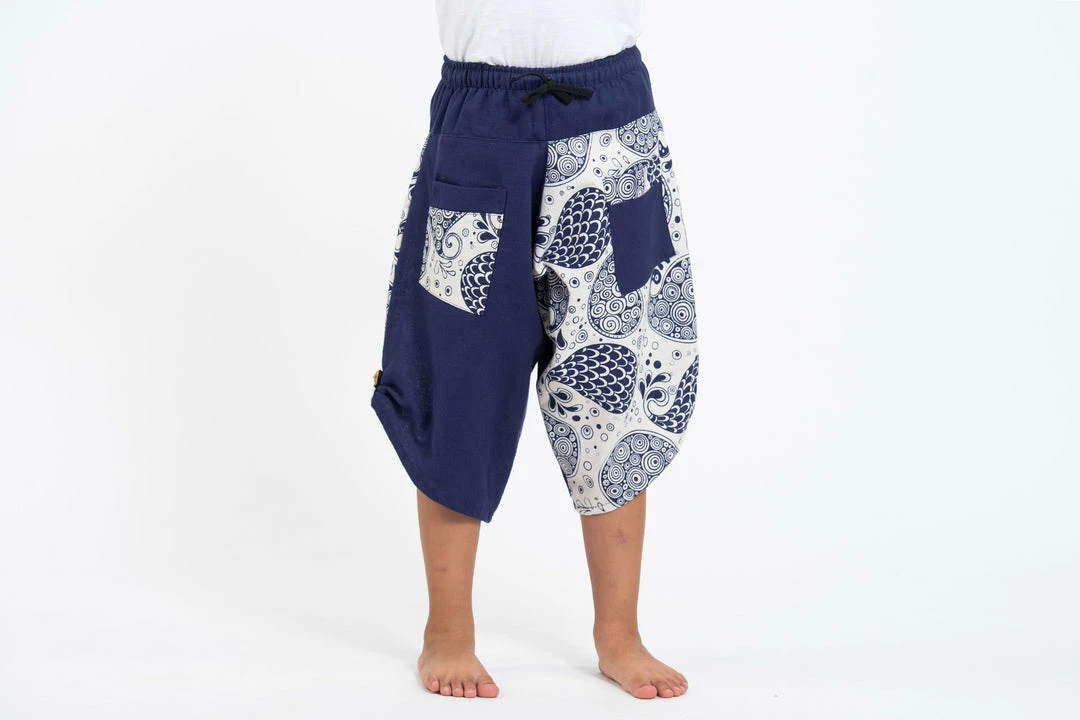 HaremPants.com Two Tone Paisley Prints Kids Three Quarter Pants In Blue