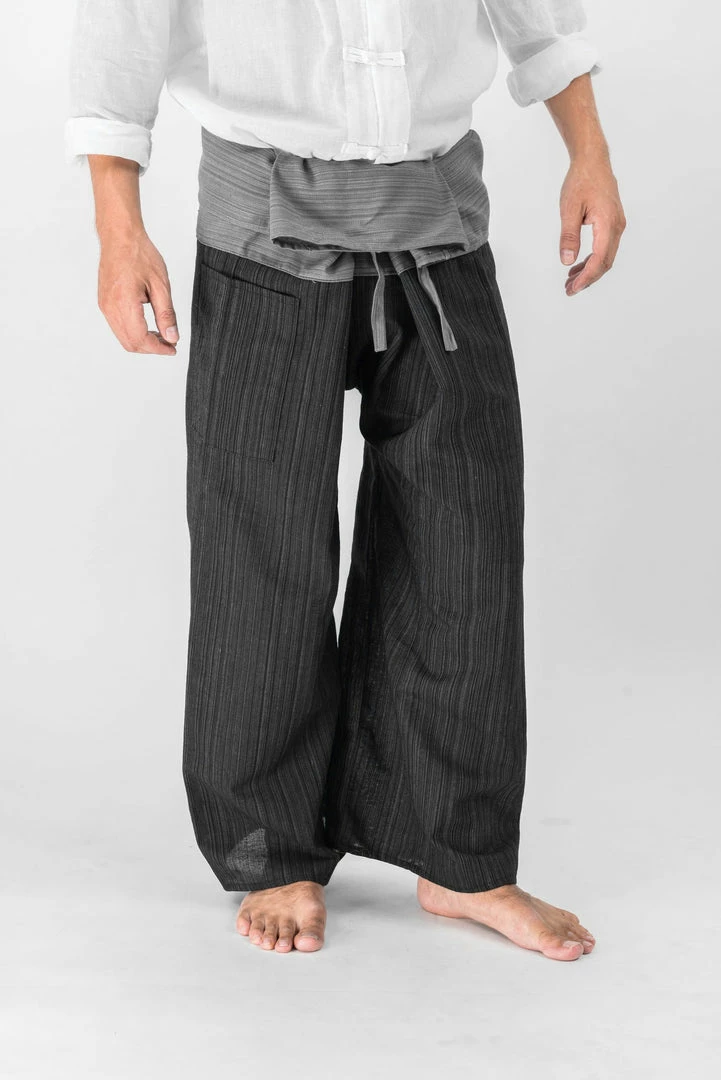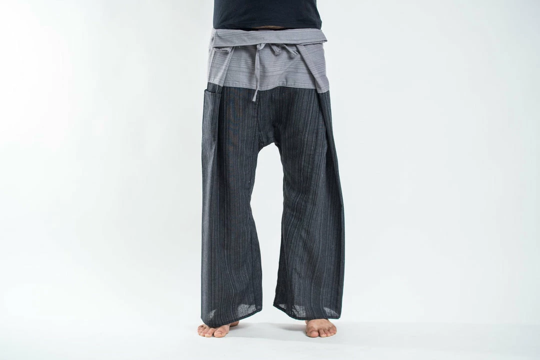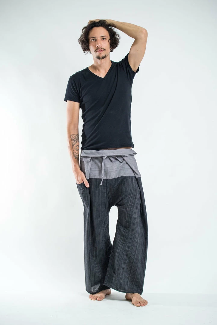 HaremPants.com Unisex 2-Tone Pinstripes Thai Fisherman Pants In Black Men’s