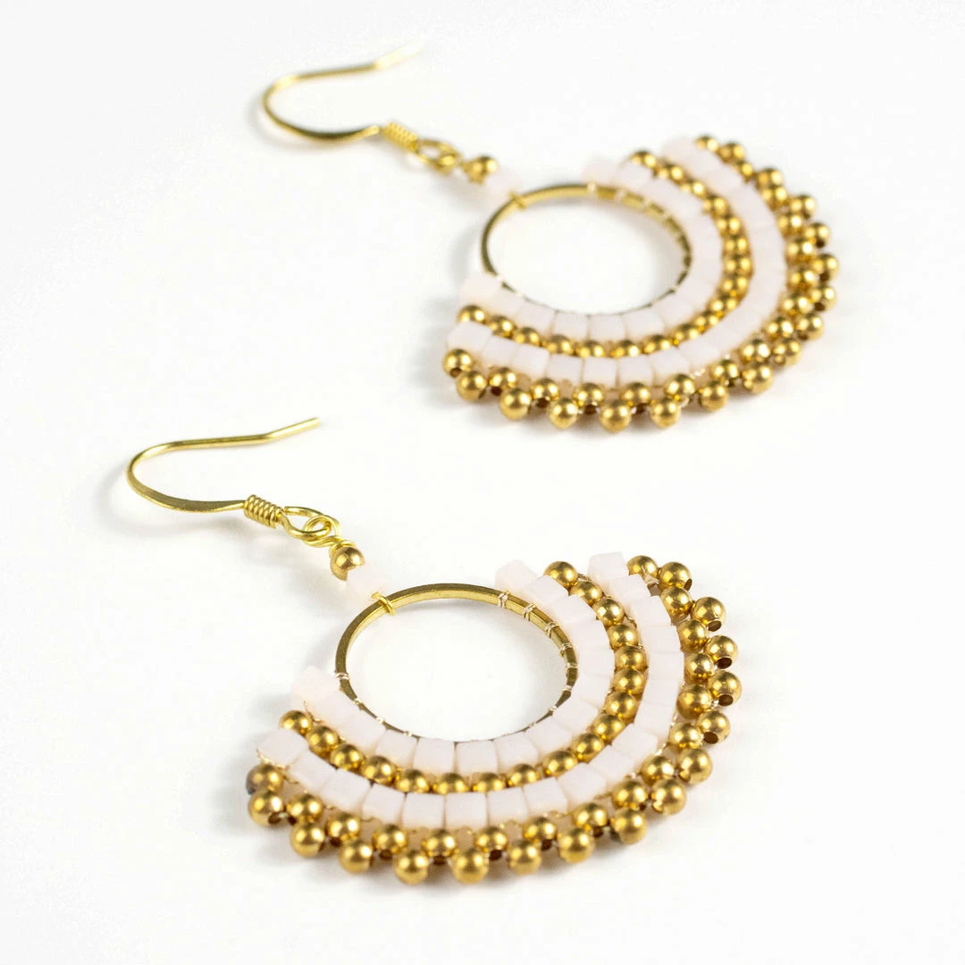 Beautiful Thai artisan handcrafted wired brass dangle earrings with lovely beads.
