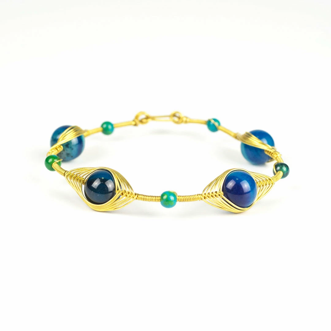 Beautiful handcrafted brass bangle bracelet wired with colorful marble beads