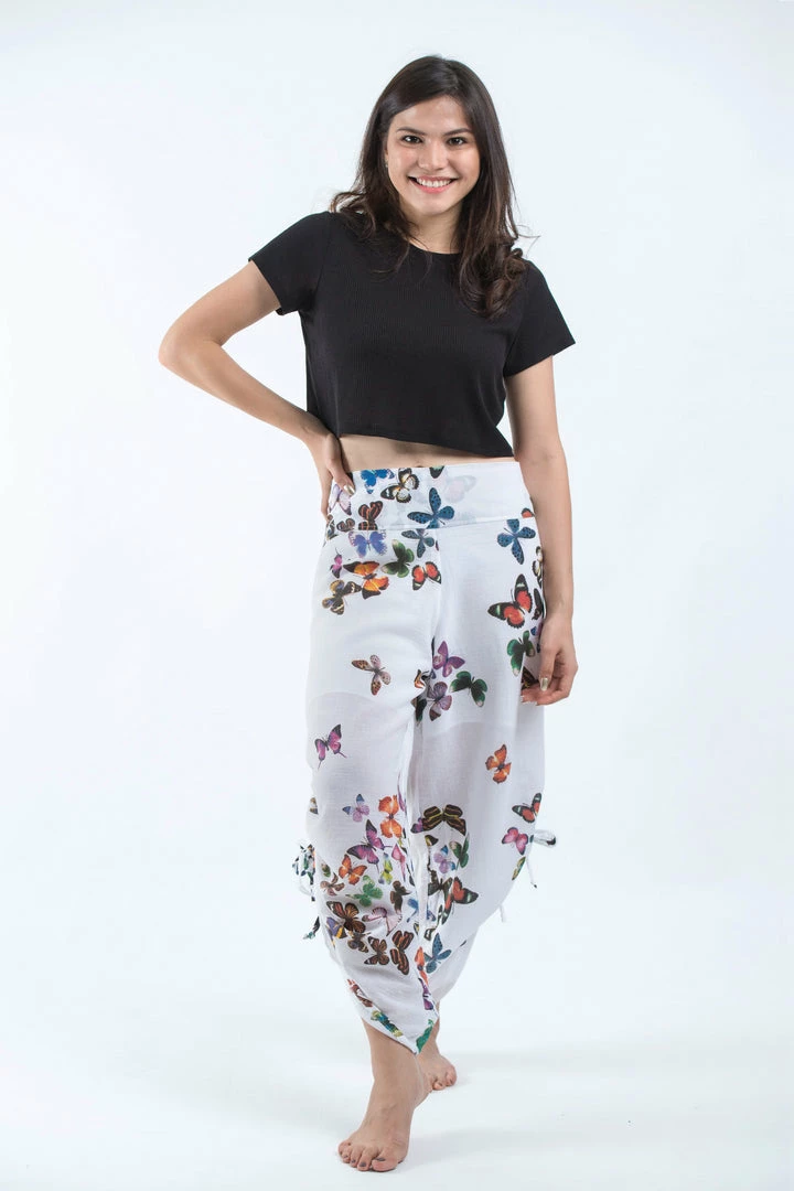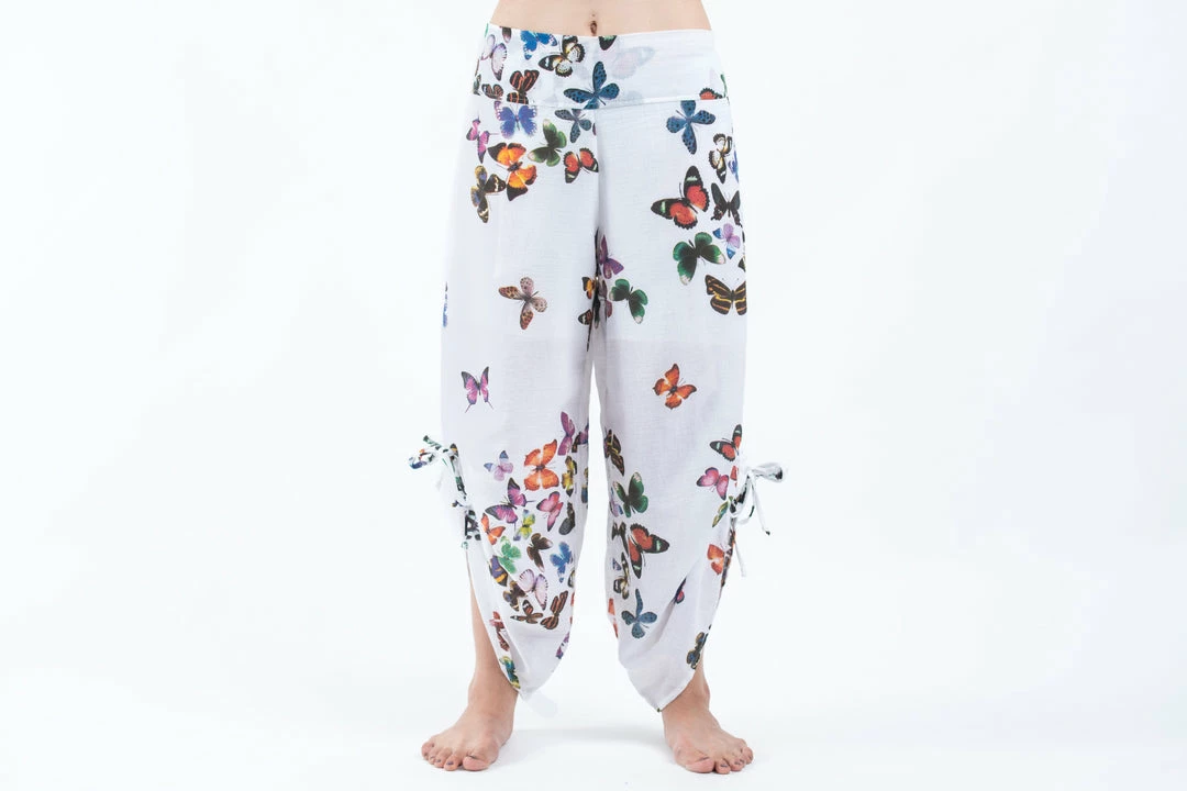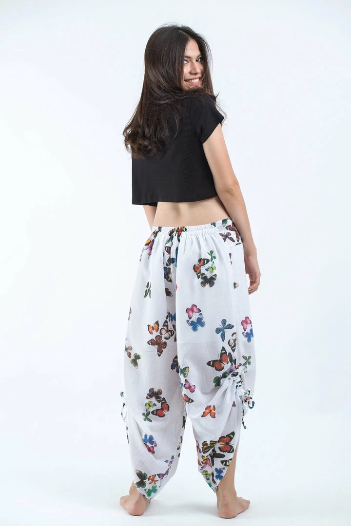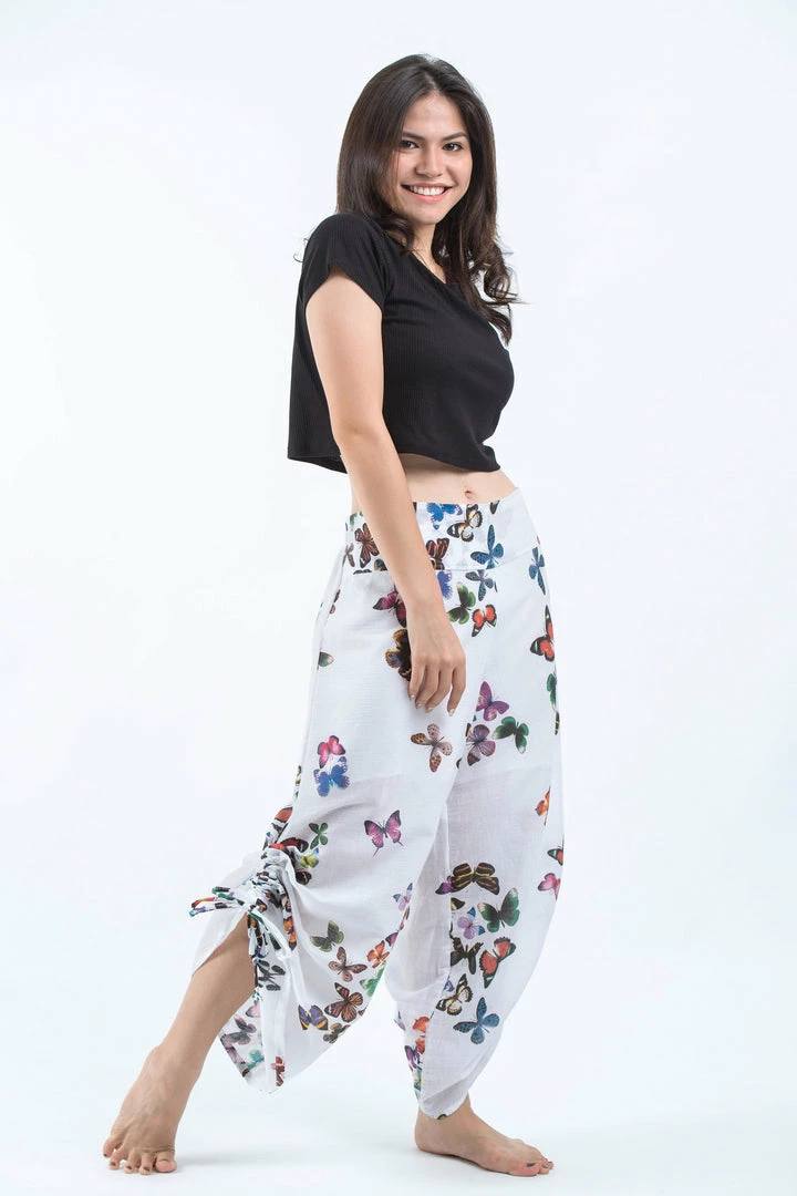 Soft breathable cotton wide-leg palazzo style harem pants with side adjustable drawstrings.