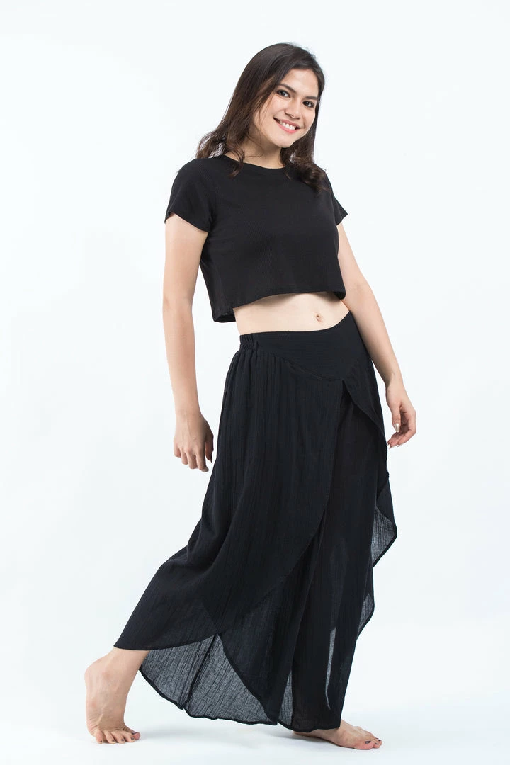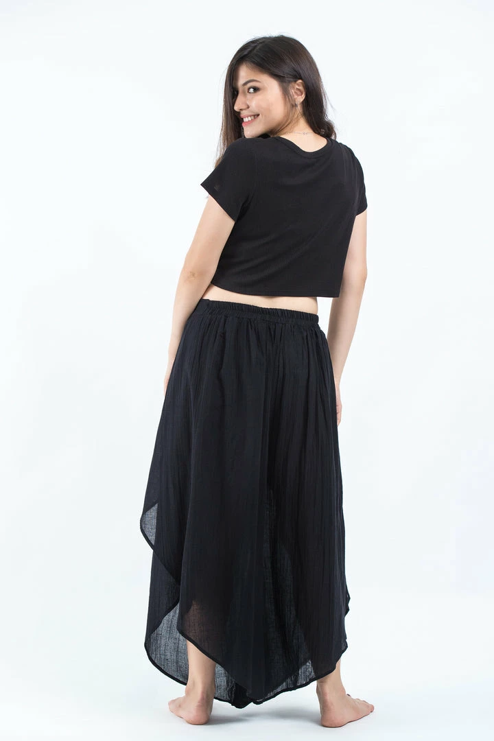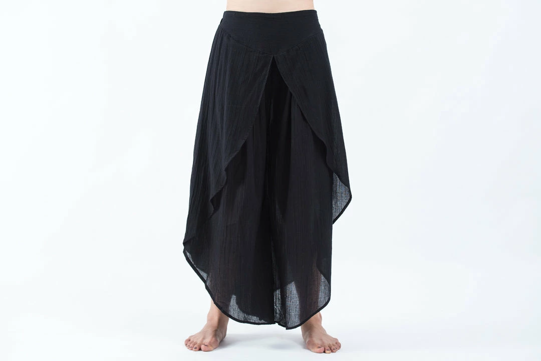 Soft breathable cotton tulip wide-leg palazzo style harem pants.