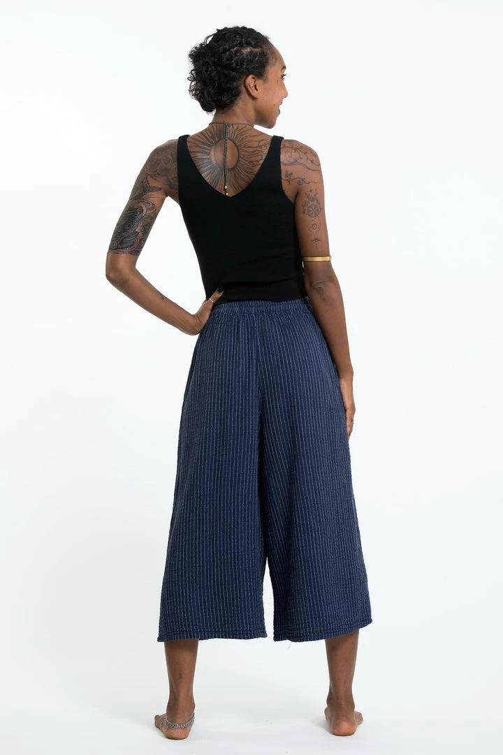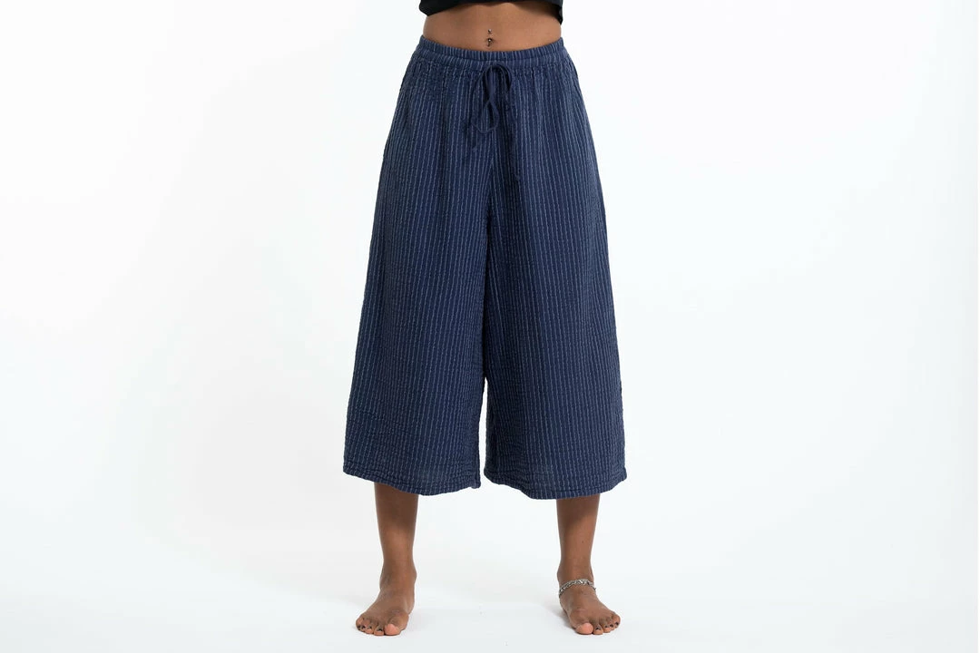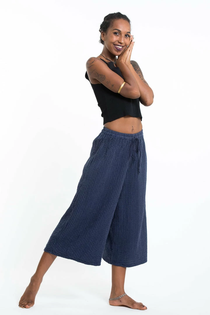These beautiful and comfortable capri palazzo pants are made of soft Thai Crinkled Cotton fabric and elastic waistband. The perfect must-have casual / lounge wear.
