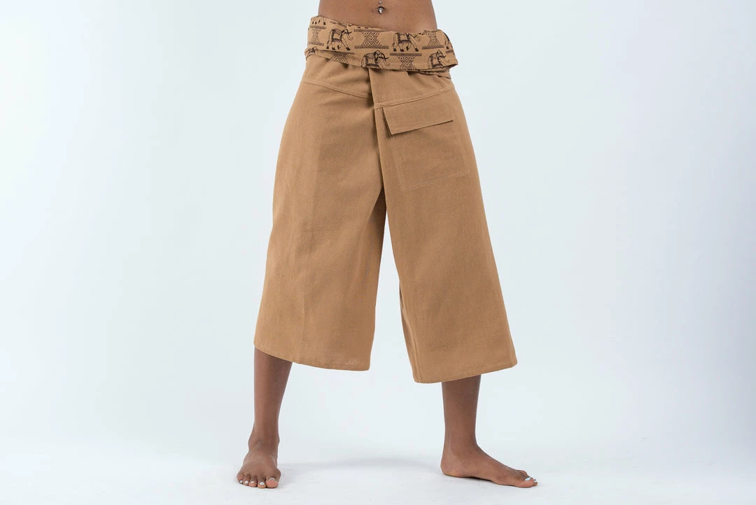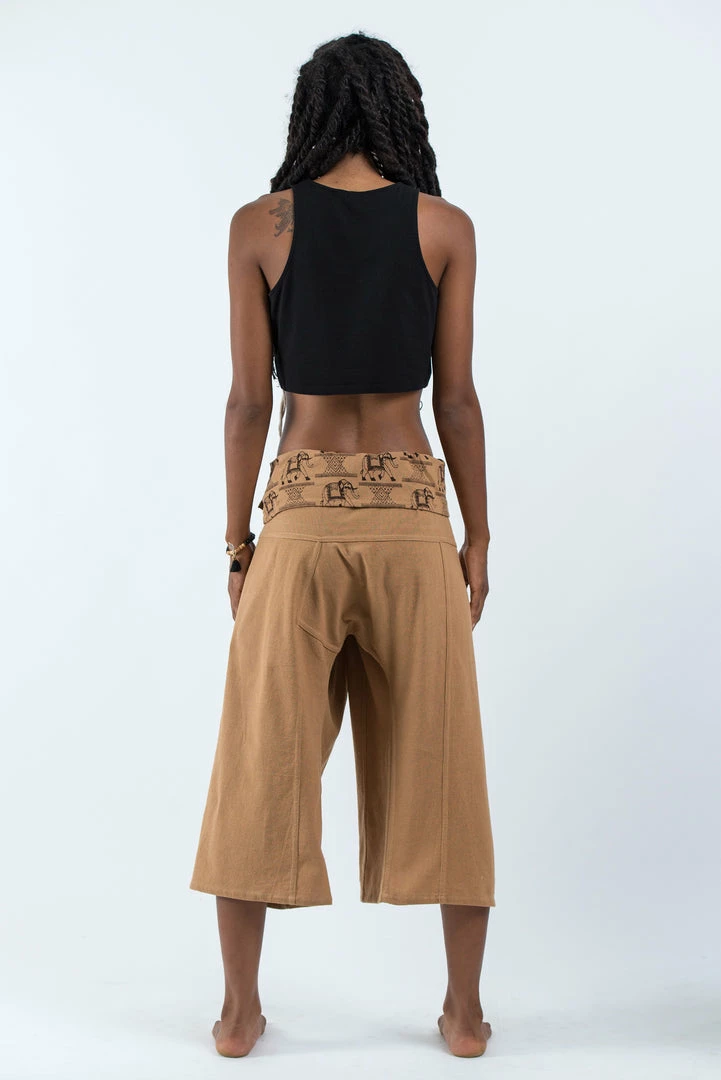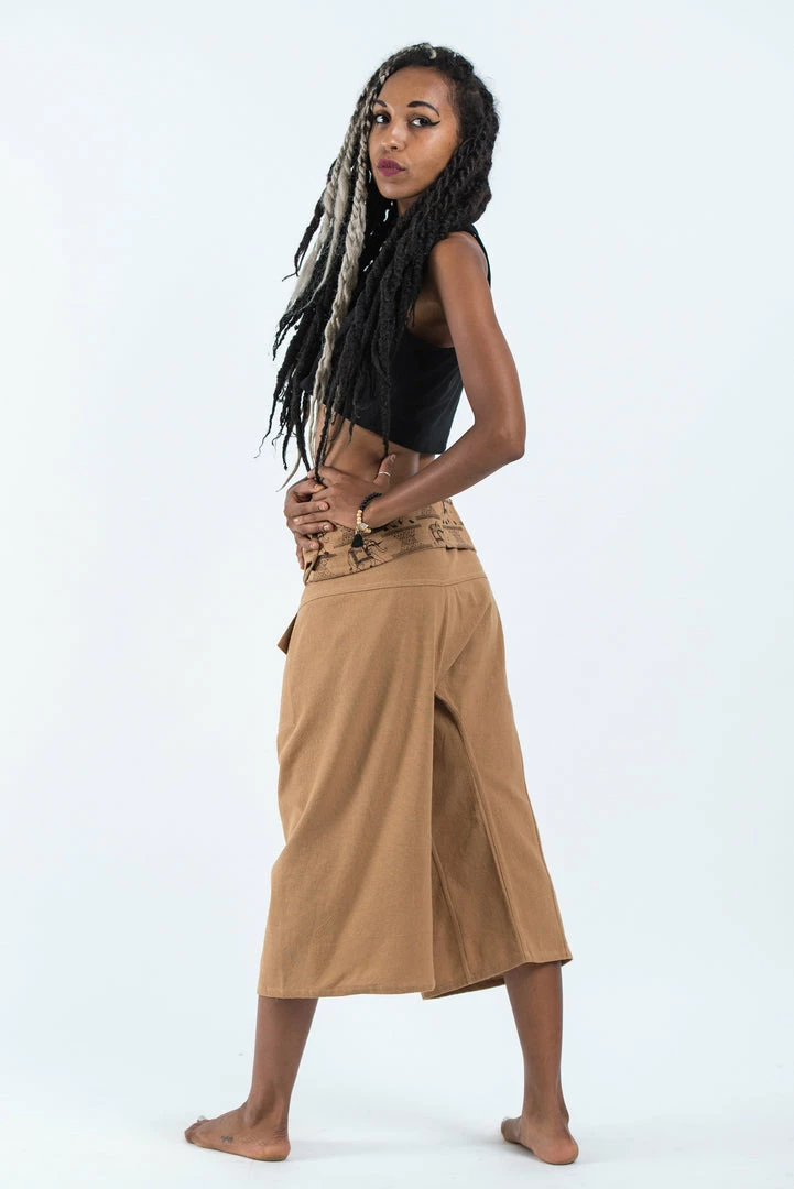 HaremPants.com Women’s Cropped Fisherman Pants With Pattern Waist Band In Beige