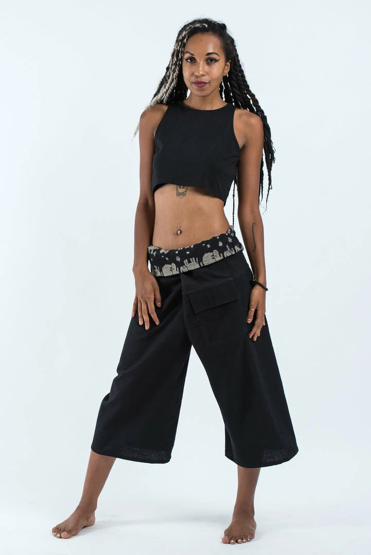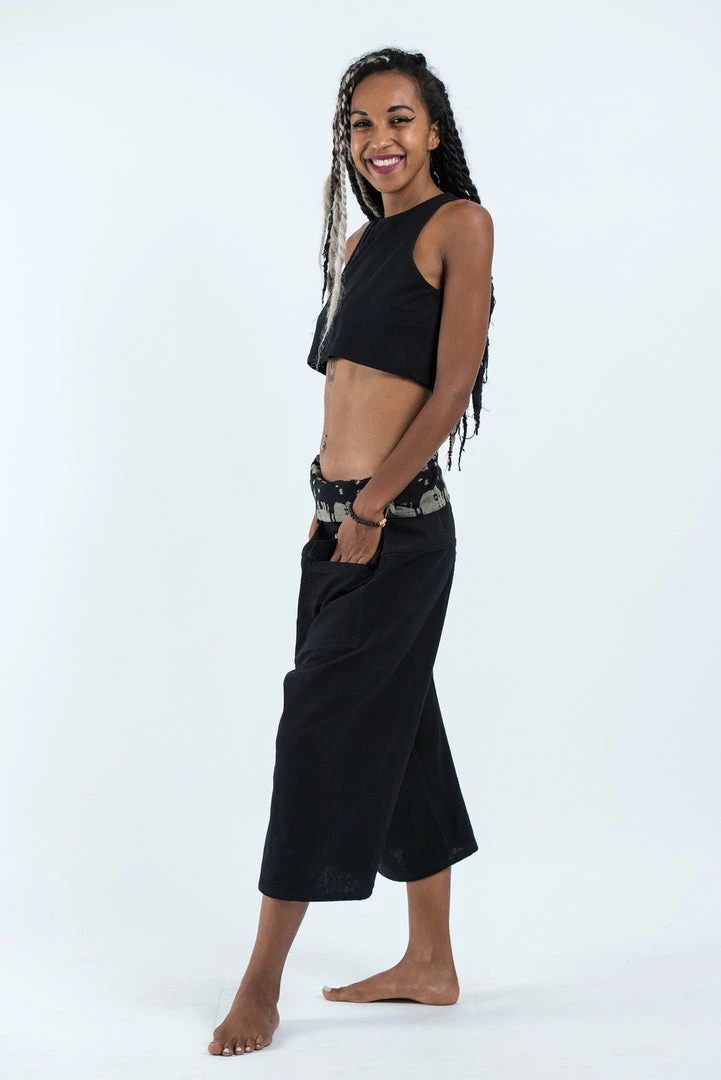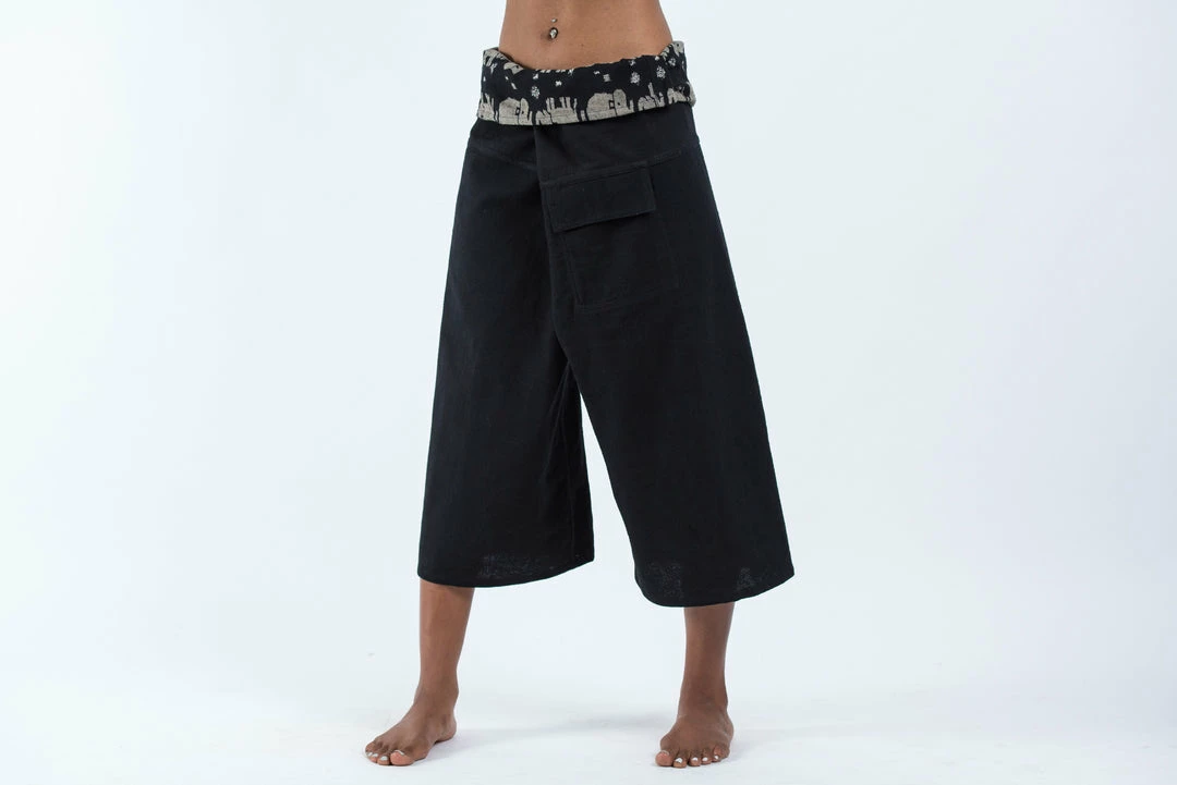 Cropped legs increase extended movement and make the pants more breathable. Featuring one front pocket and beautiful pattern fabric on the waist band.