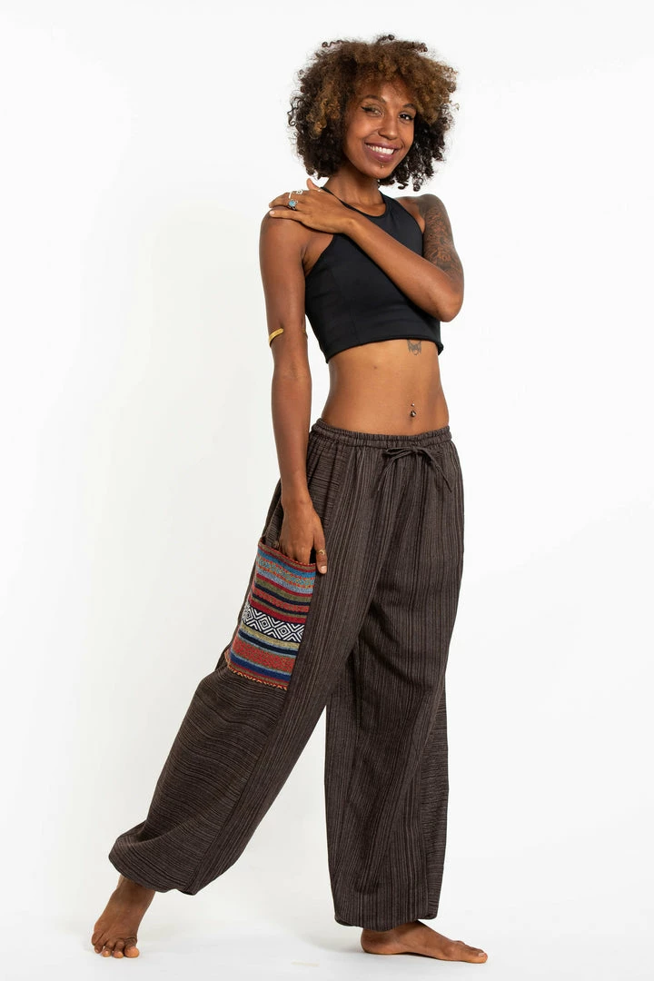 The Pinstripes Cotton Pants have elasticated waist and adjustable drawstring. Perfect for many occasions — lounging, dancing, yoga, and so on