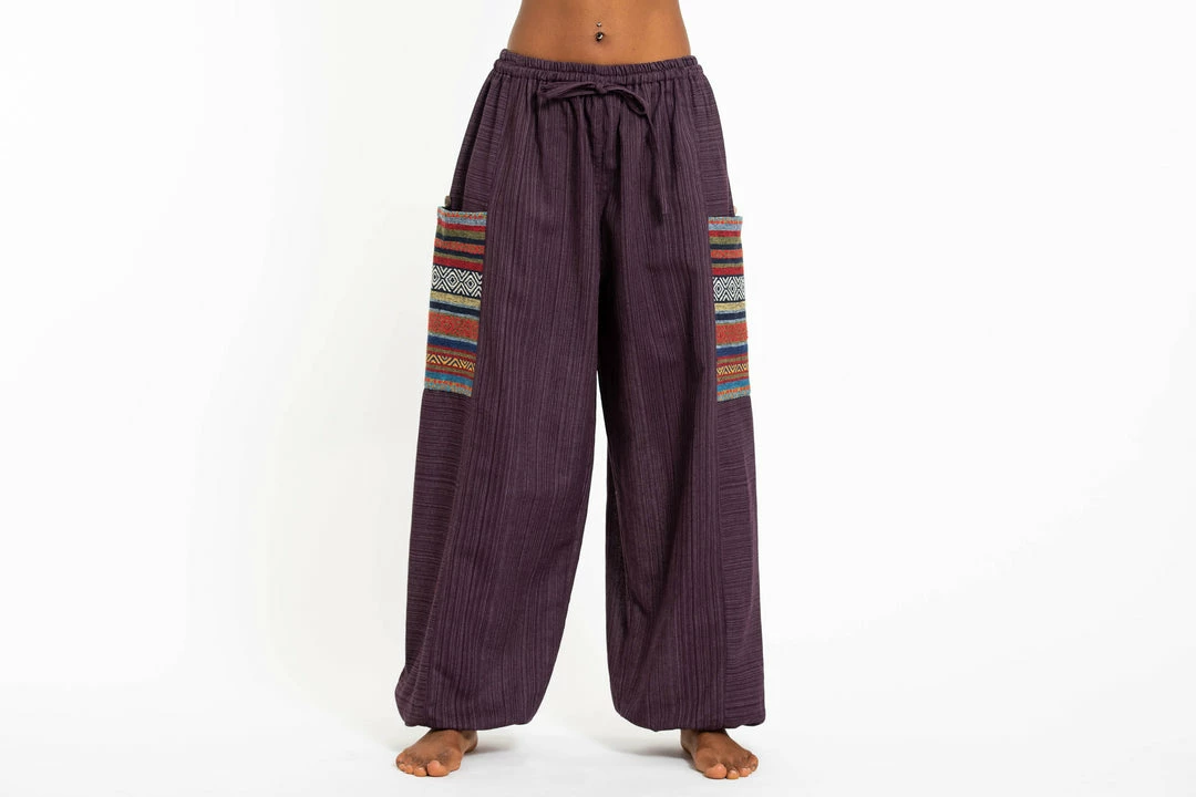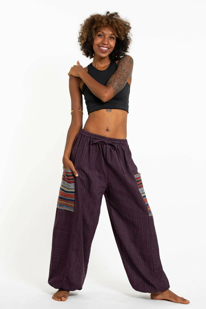 HaremPants.com Women’s Drawstring Pinstripes Cotton Pants With Aztec Pocket In Purple