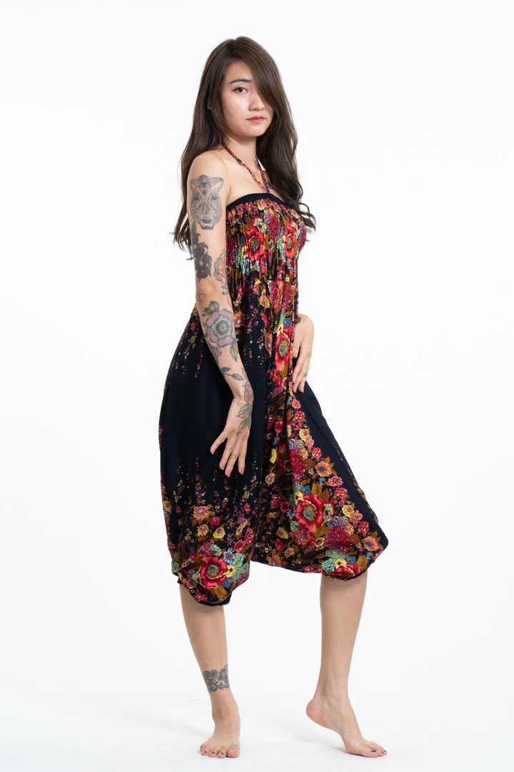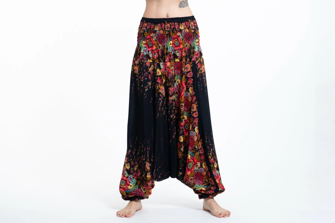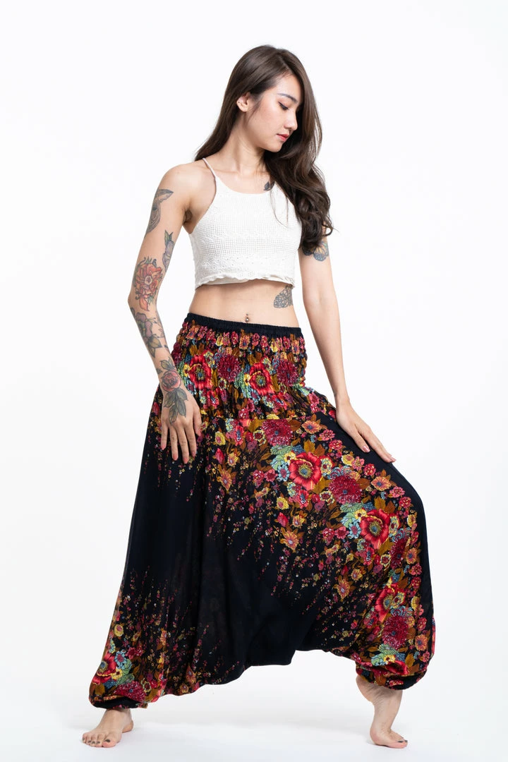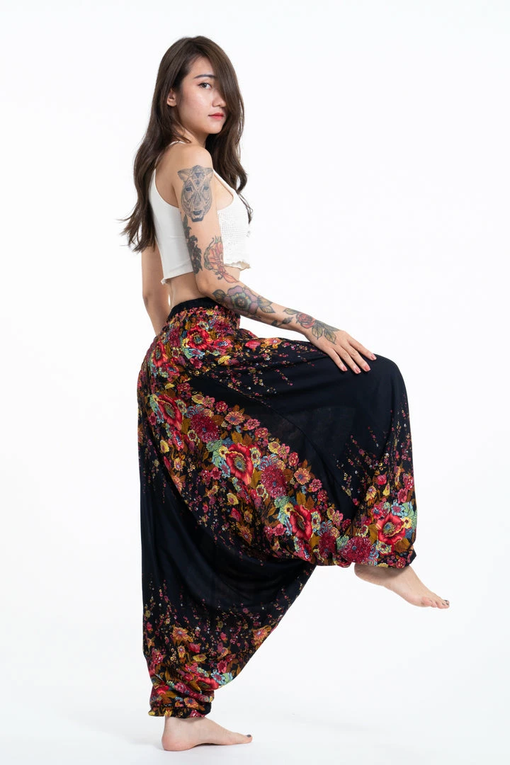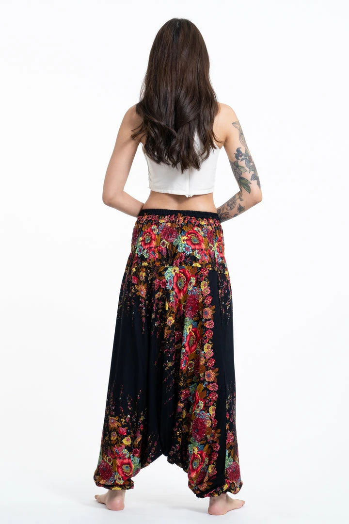 HaremPants.com Women’s Floral Jumpsuit Harem Pants In Black