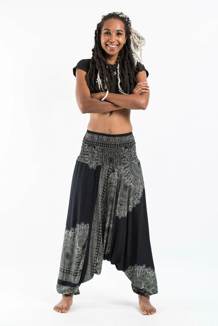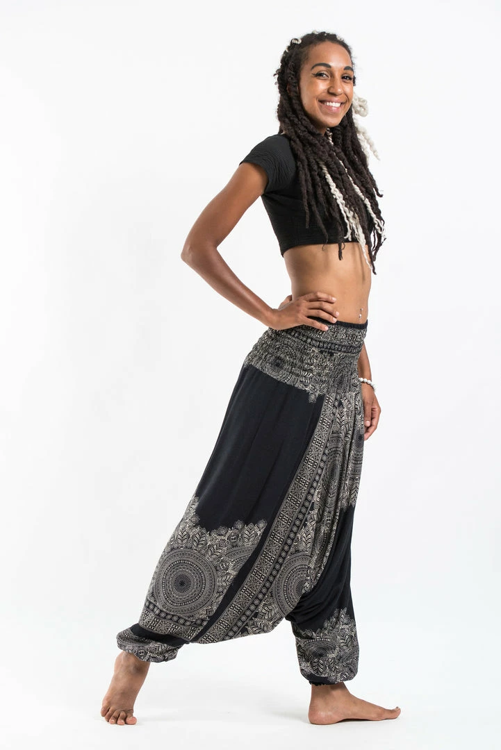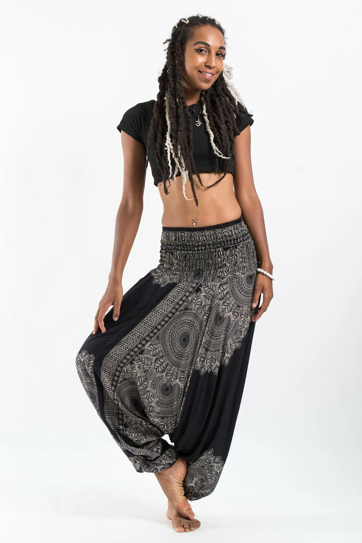 HaremPants.com Women’s Floral Mandalas Jumpsuit Harem Pants In Black