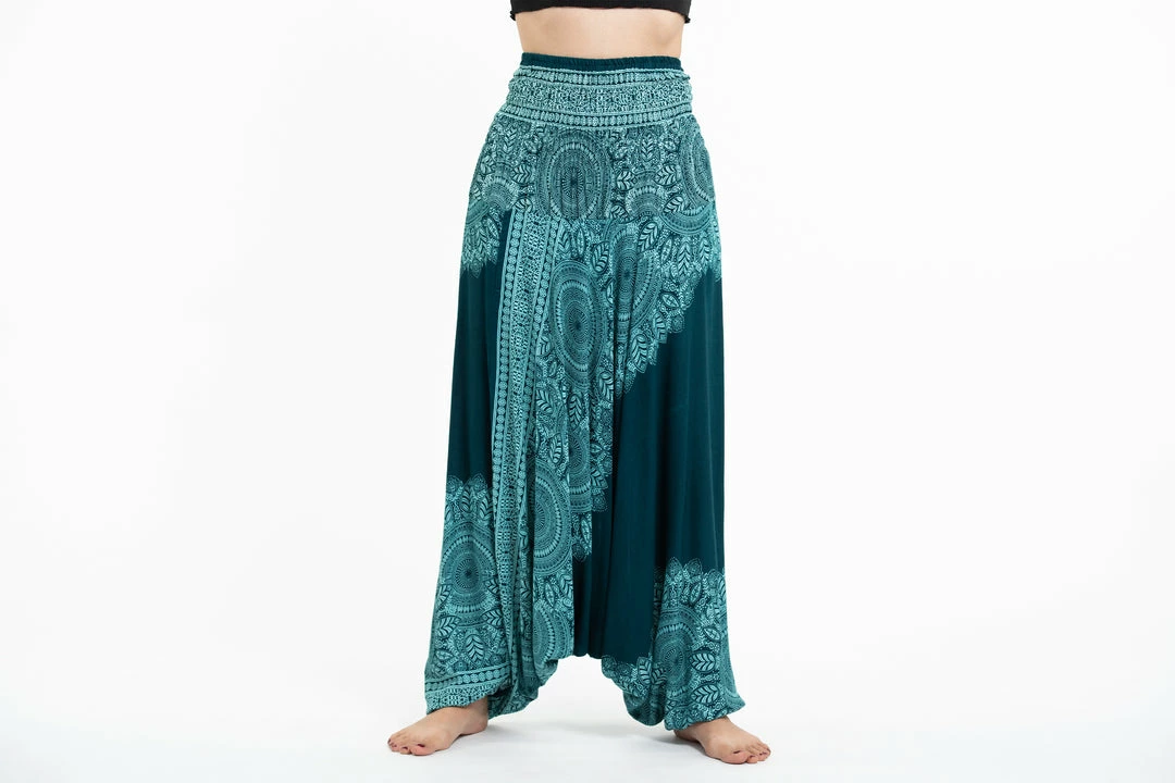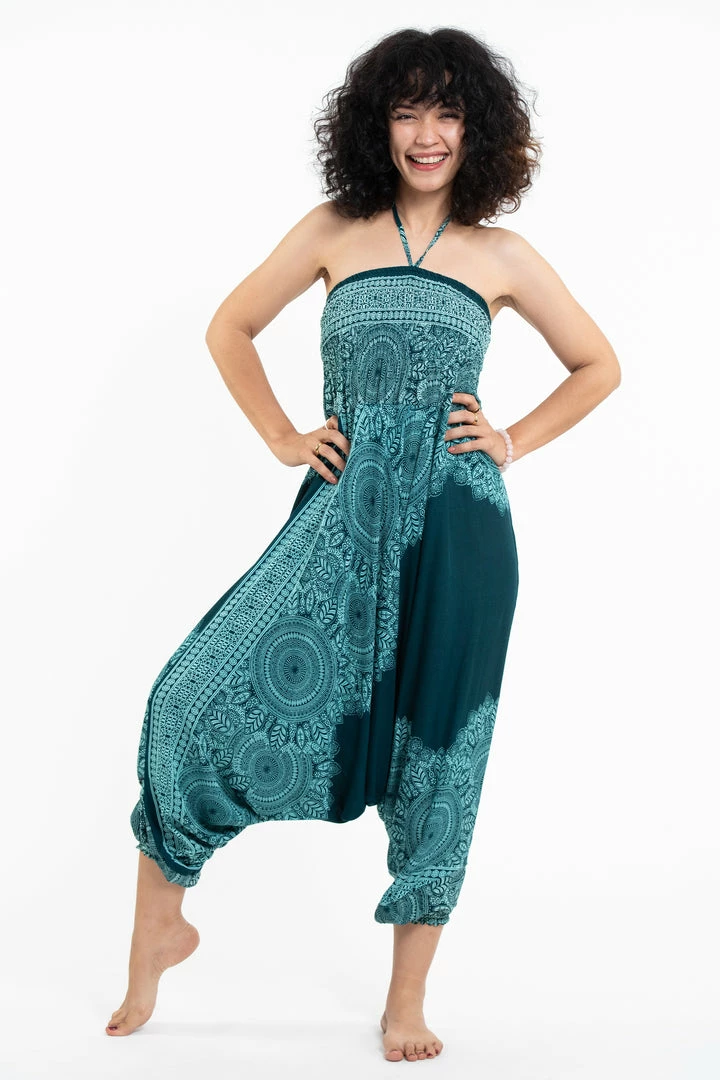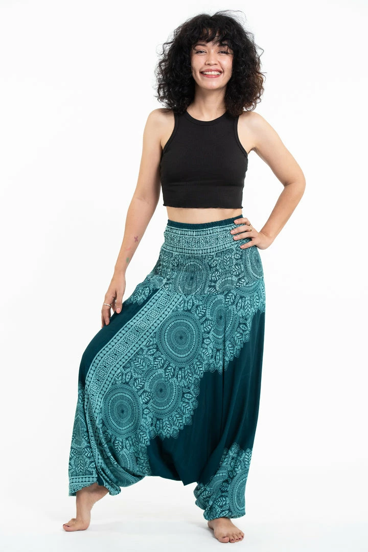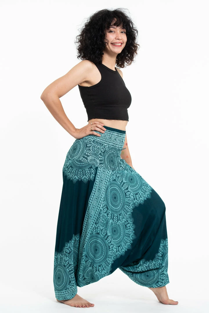 HaremPants.com Women’s Floral Mandalas Jumpsuit Harem Pants In Teal