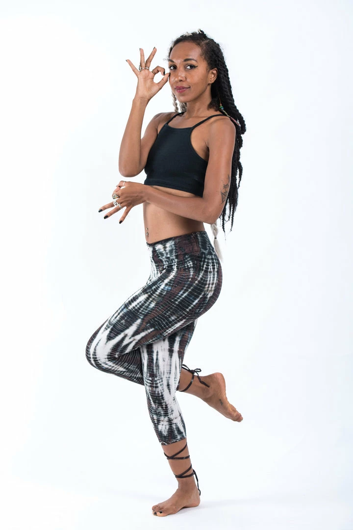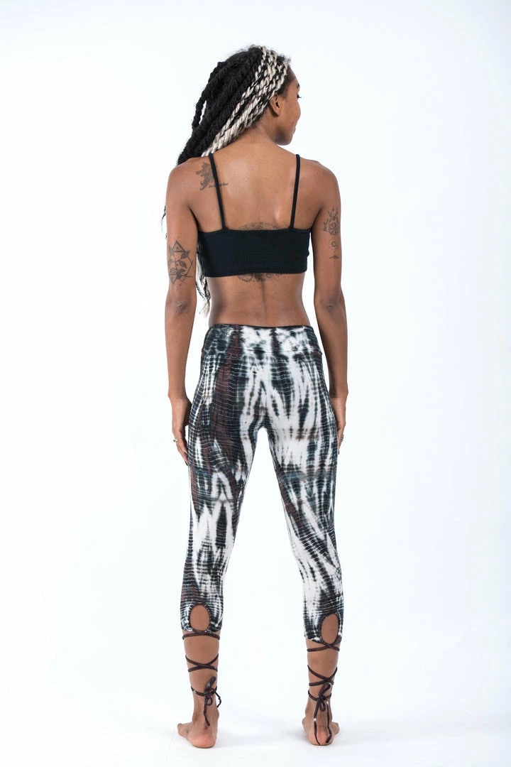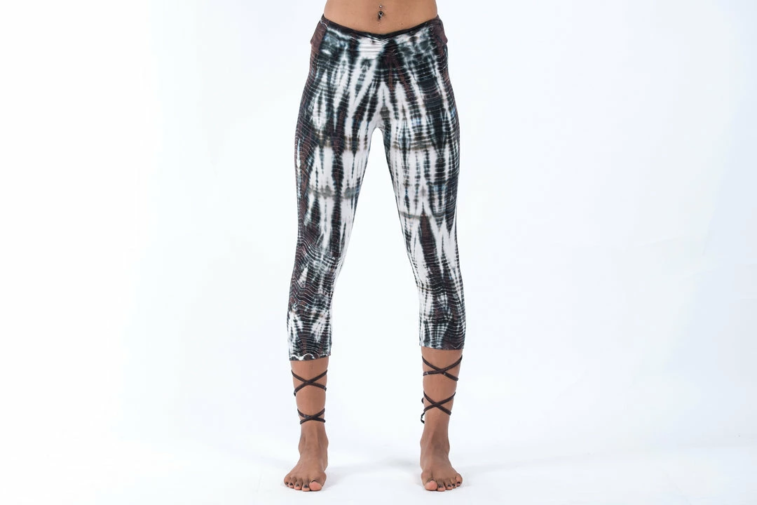 HaremPants.com Women’s Lightning Stripes Tie Dye Cotton Capri Leggings In Black White