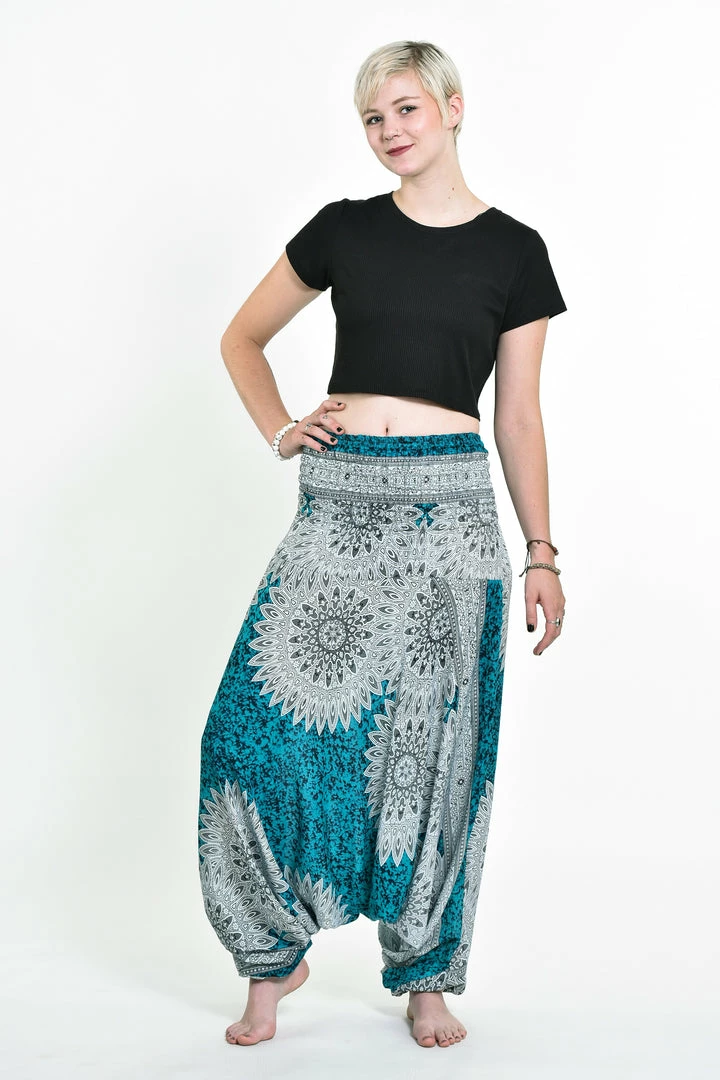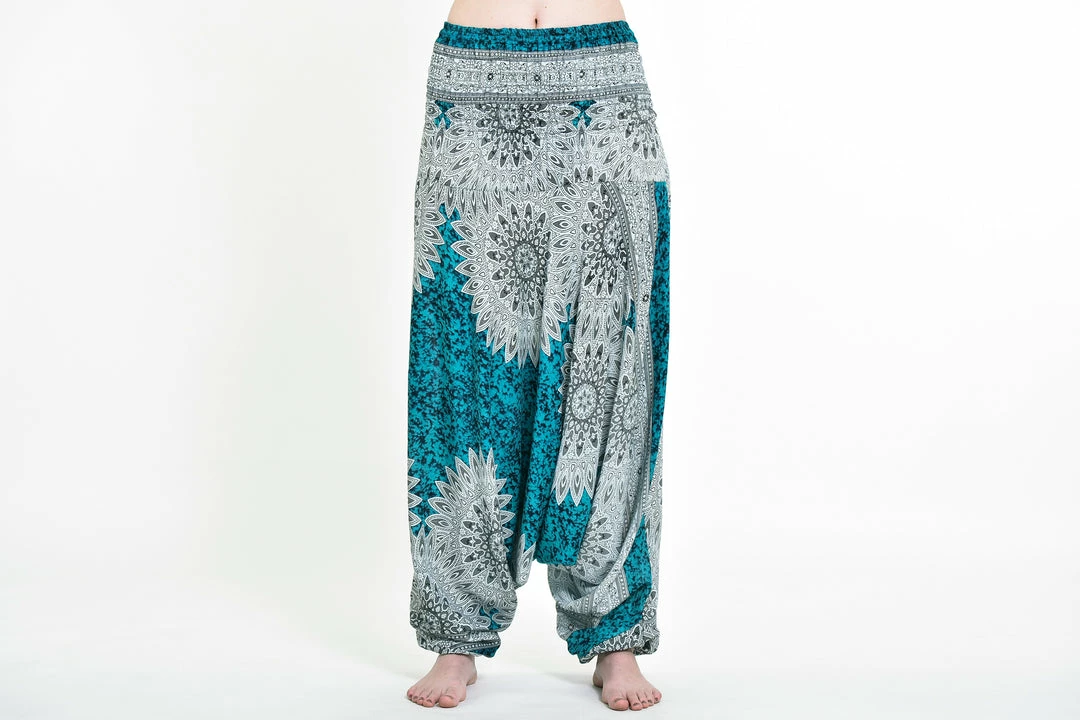 HaremPants.com Women’s Marble Mandalas Jumpsuit Harem Pants In Turquoise