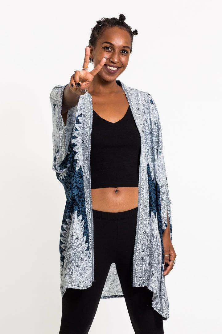 HaremPants.com Women’s Marble Mandalas Kimono Cardigan In Indigo