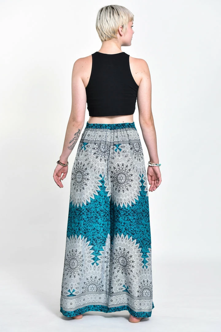HaremPants.com Women’s Marble Mandalas Palazzo Style Harem Pants In Turquoise