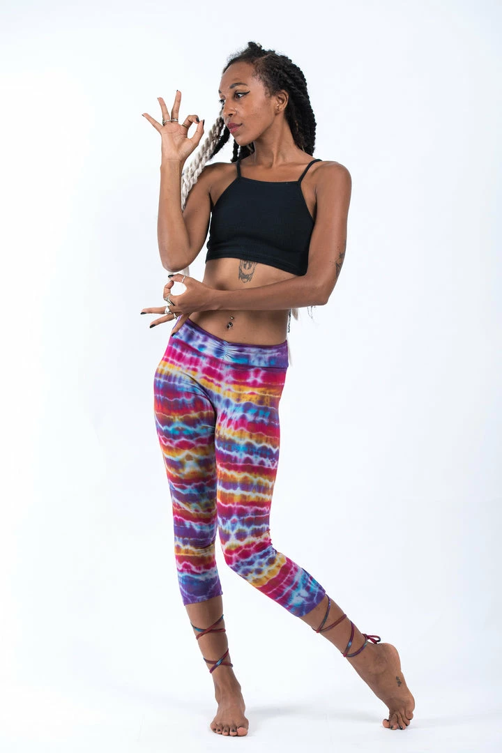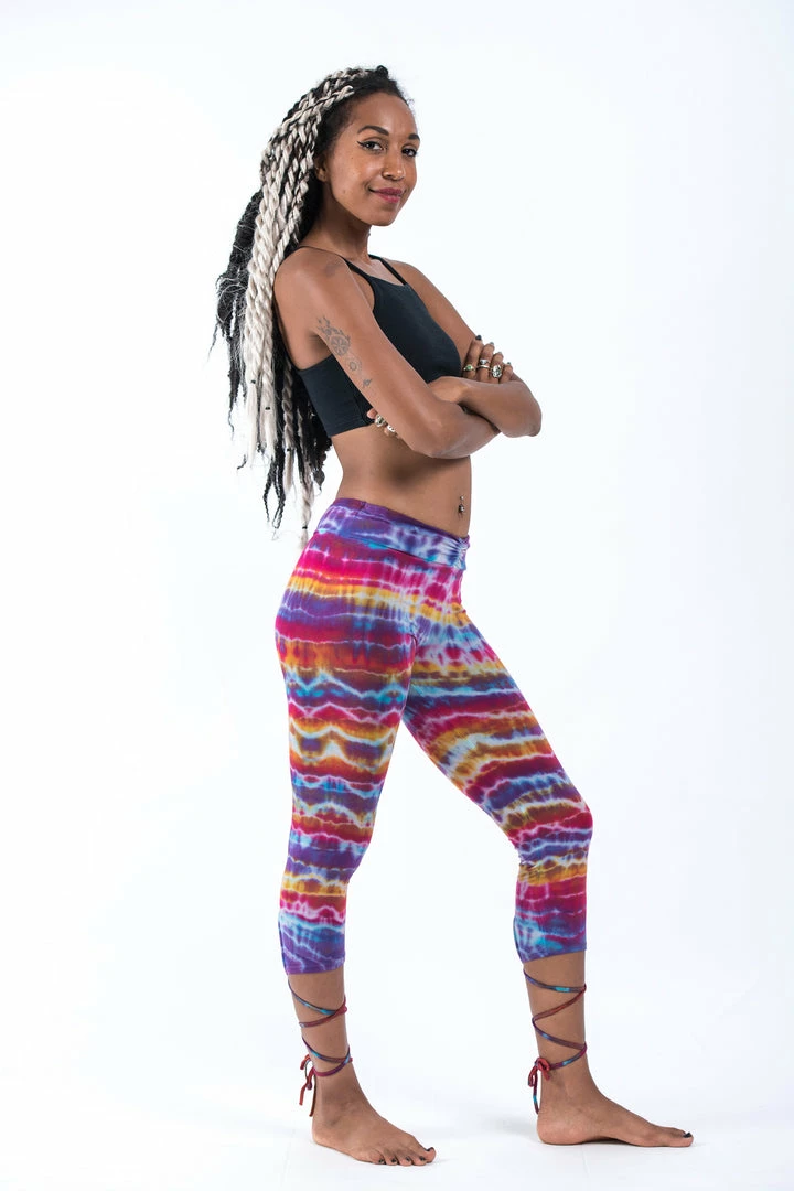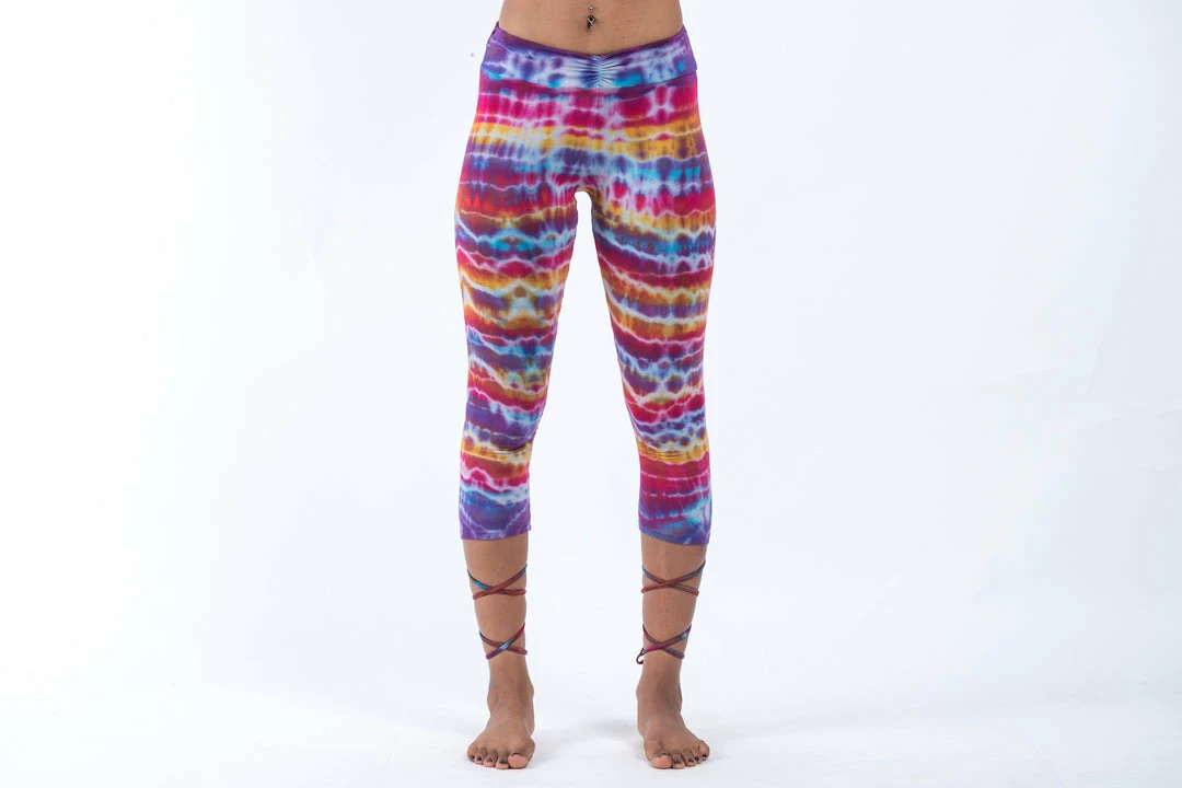 HaremPants.com Women’s Melting Stripes Tie Dye Cotton Capri Leggings In Sugar Rainbow